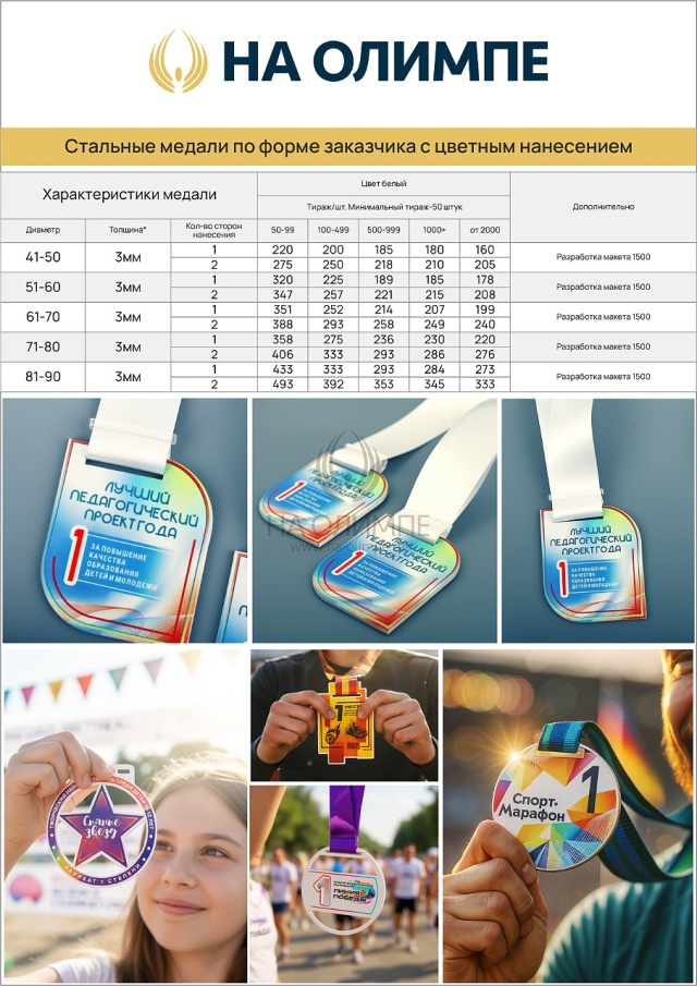 Стоимость медали указана за нанесение с одной стороны.