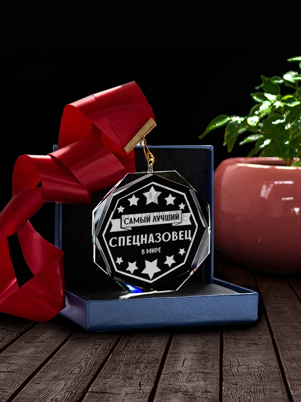 Медаль С58 "Лучшему спецназовцу" с гравировкой, цвет прозрачный