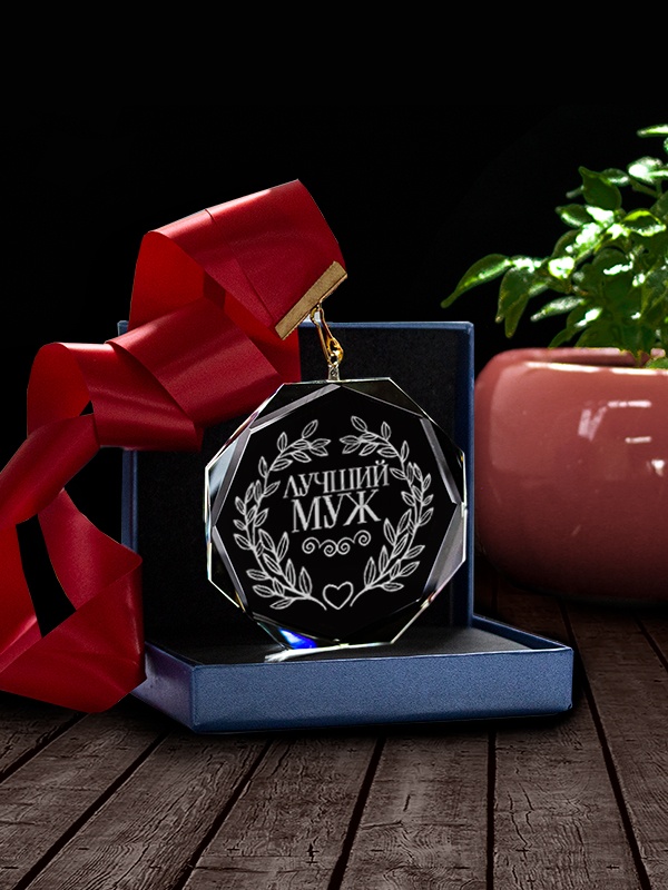 Медаль С58 "Лучший муж" с гравировкой, цвет прозрачный