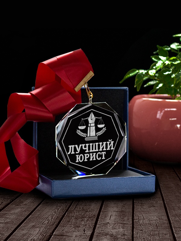 Медаль С58 "Лучший Юрист" с гравировкой, цвет прозрачный