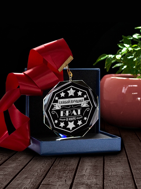 Медаль С58 "Самый Лучший Брат" с гравировкой, цвет прозрачный