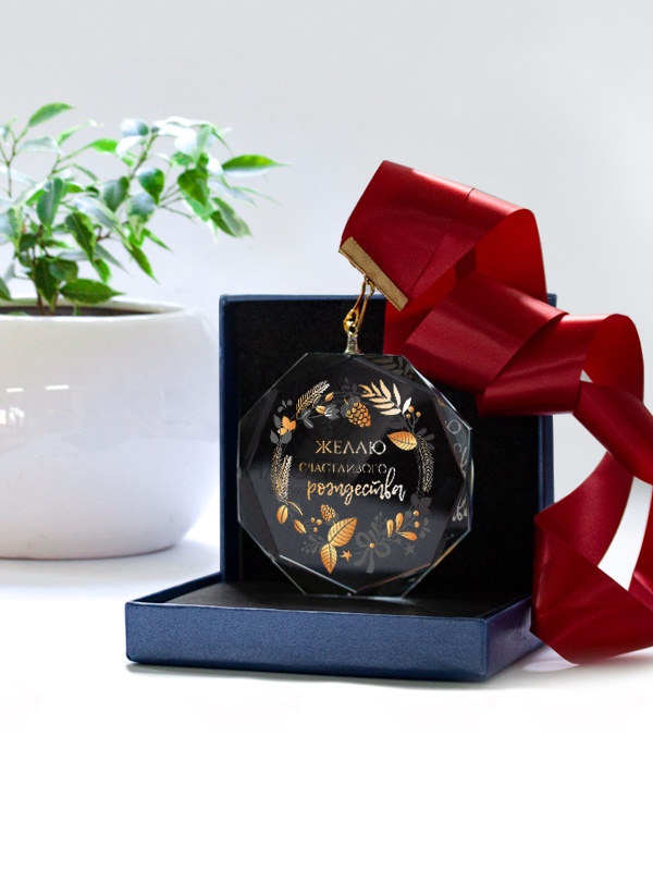 Медаль С58 "Счастливого Рождества" с полноцветной печатью, цвет прозрачный