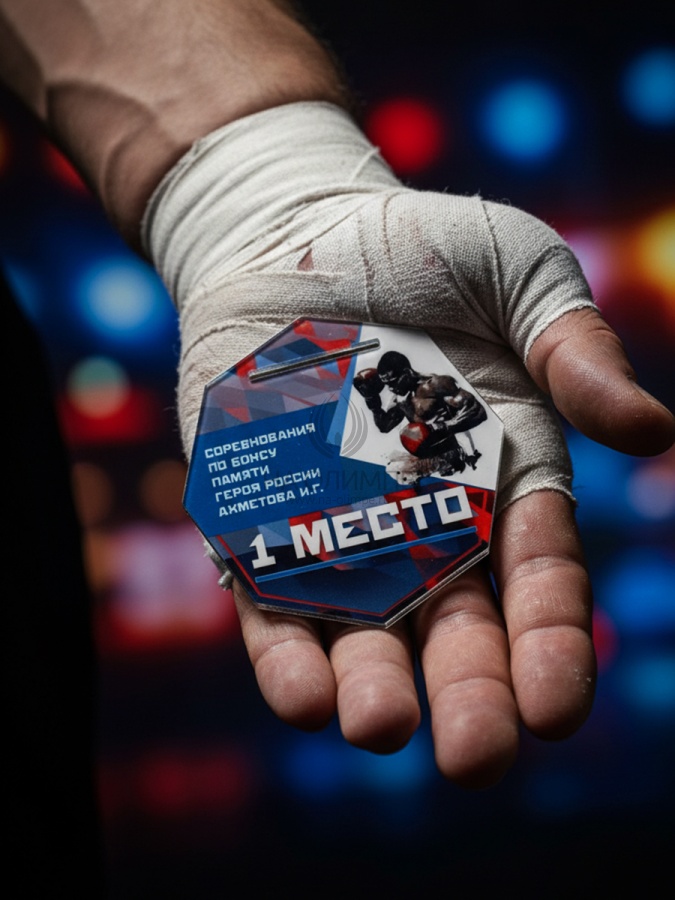 Медаль из стального листа 2мм с порошковым покрытием и цветным нанесением по вашему запросу. Минимальный тираж 50шт.