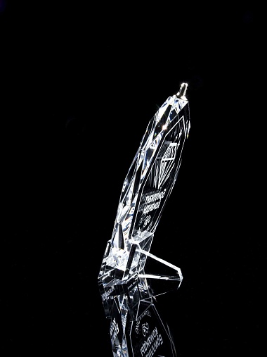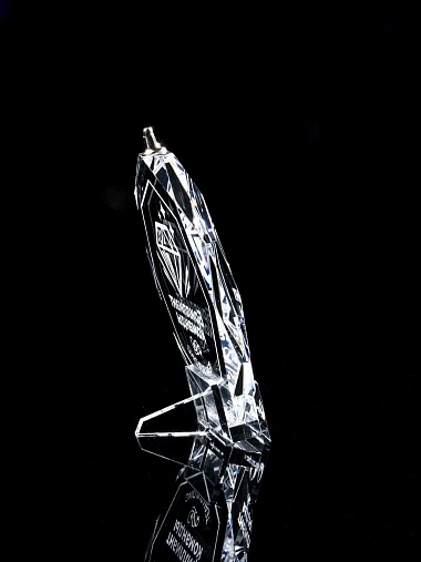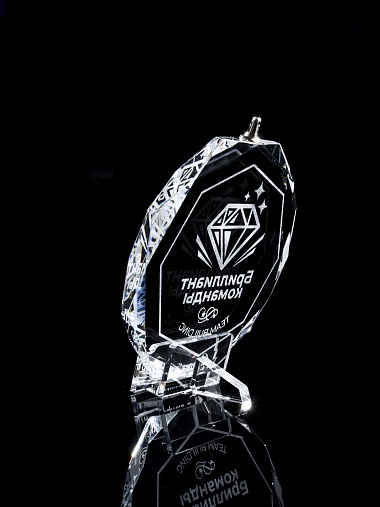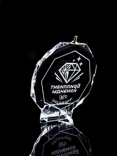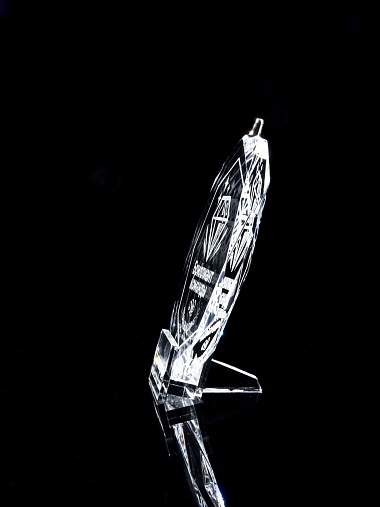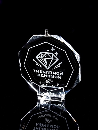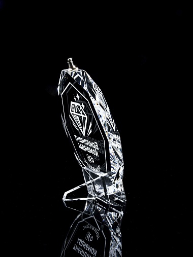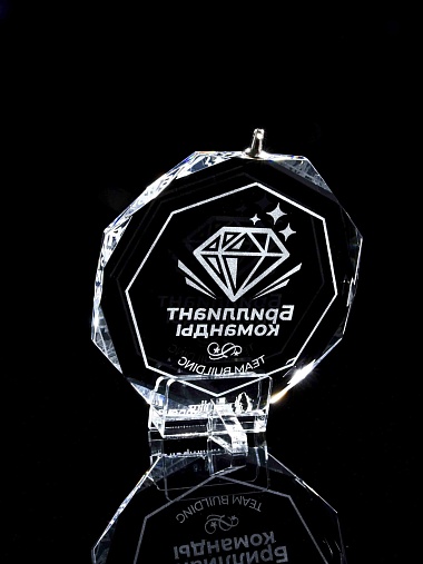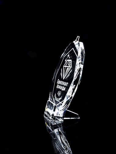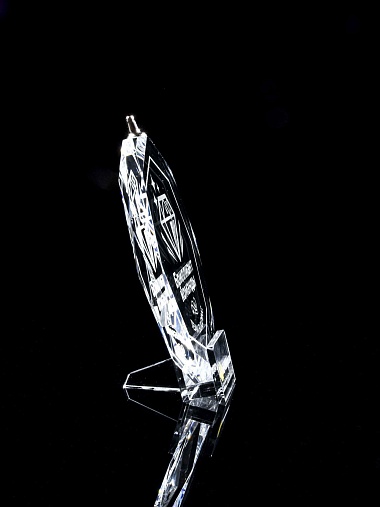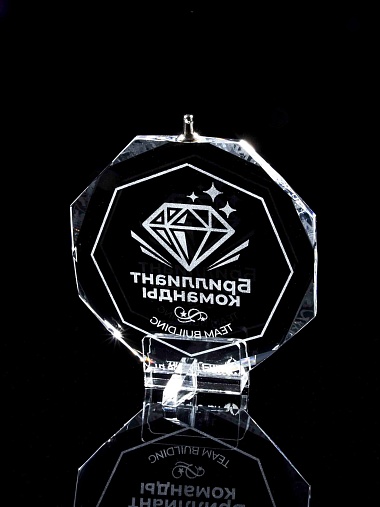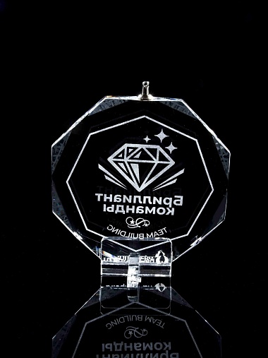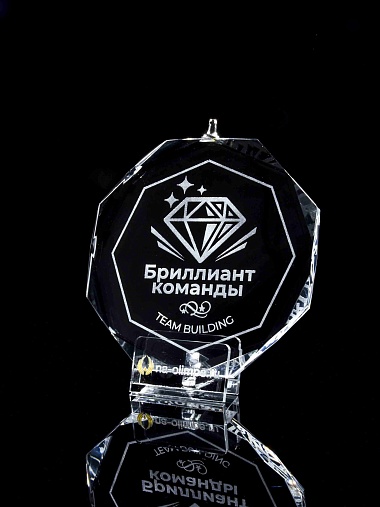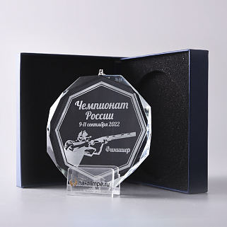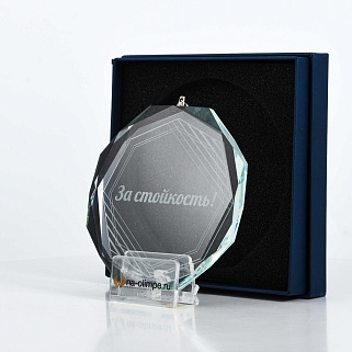 Медаль из стекла, толщиной 10мм. с нанесением лазерной гравировки. Лазерная гравировка производится на высокоточном оборудовании, что позволяет выполнить нанесение с практически любой степенью детализации. Гравировка не имеет видимого углубления внутрь награды, она выглядит и ощущается как матированное стекло. Диаметр медали равен 100мм. Вес медали без футляра 195гр.