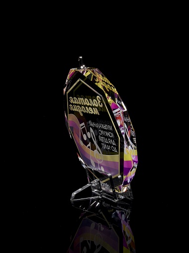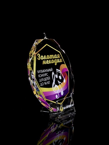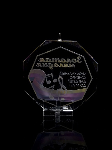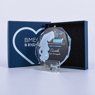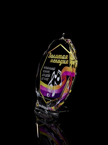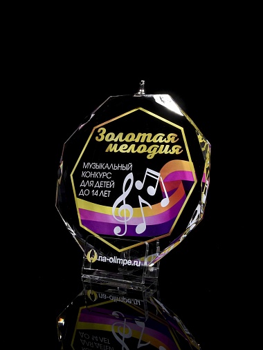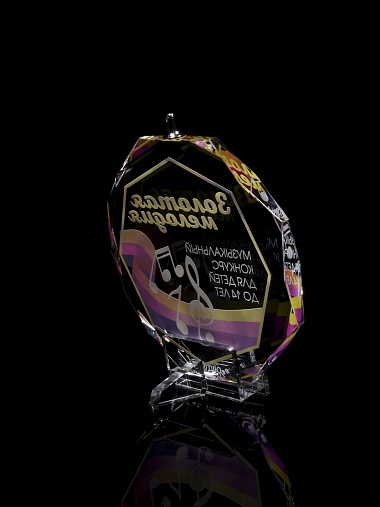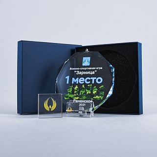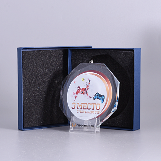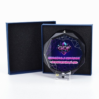 Медаль из стекла, толщиной 10мм с полноцветной печатью. Печать выполняется на uv-принтере уф-отверждаемыми чернилами. Изображение не выцветает и не желтеет со временем. Высокое качество печати позволяет наносить изображения с большой детализацией, любых цветов включая белый. Изображение наносится на обратную сторону медали зеркально, благодаря этому становится возможным оценить толщину материала награды и медаль раскрывается с лучшей стороны. Диаметр медали равен 100мм. Вес медали без футляра 195гр. Поставляется в комплекте с подарочным футляром (цвет футляра и подложка могут отличаться), лента в комплект не входит и заказывается отдельно.
