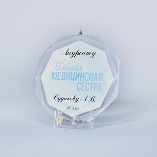 Медаль стеклянная C47 с цветным нанесением, площадь нанесения н0