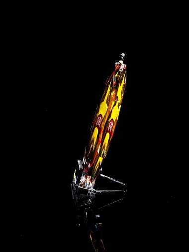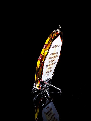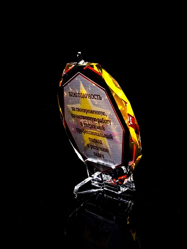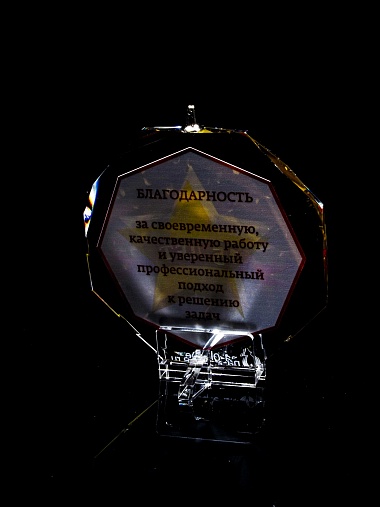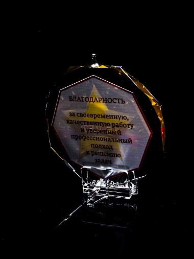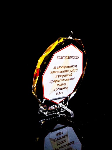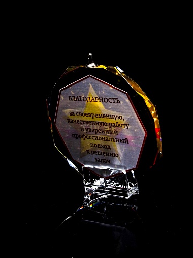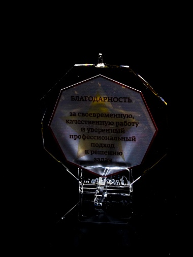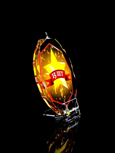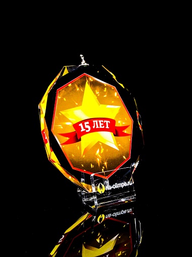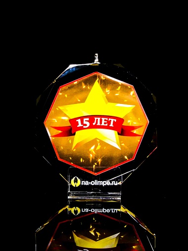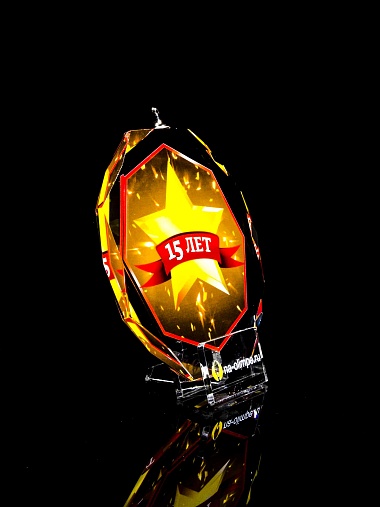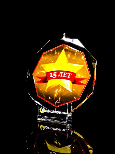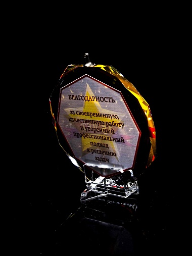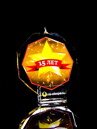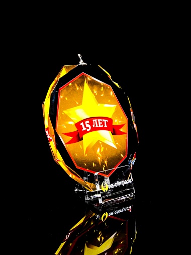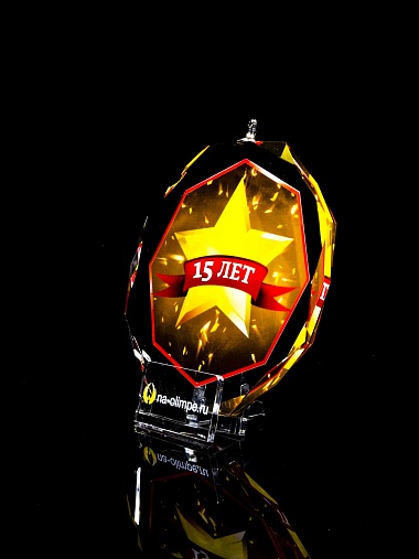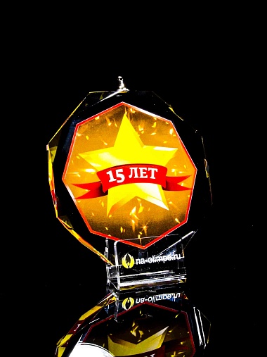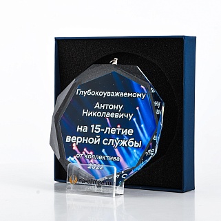 Медаль из стекла, толщиной 10 мм. с полноцветной печатью. Печать выполняется на uv-принтере уф-отверждаемыми чернилами. Изображение не выцветает и не желтеет со временем. Высокое качество печати позволяет наносить изображения с большой детализацией, любых цветов включая белый. Изображение наносится на обратную сторону медали дважды, при этом в первый раз зеркально. Благодаря этому информация на медали читается как спереди так и сзади. Например спереди может быть размещена информация о награждаемом человеке, номинация, логотип, а перевернув медаль, мы увидим слова поздравления. Однако обязательным условием подобной техники печати является полностью закрашенный фон, это нужно для того, чтобы передняя печать не мешала читаемости задней. Несомненным плюсом этого способа печати является возможность разместить большое количество информации на одной награде. Диаметр медали равен 100мм. Вес медали без футляра 195 гр. Поставляется в комплекте с подарочным футляром (цвет футляра и подложка могут отличаться), лента в комплект не входит и заказывается отдельно.