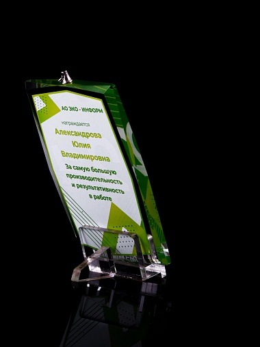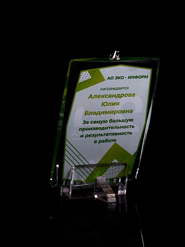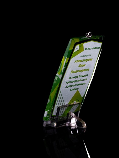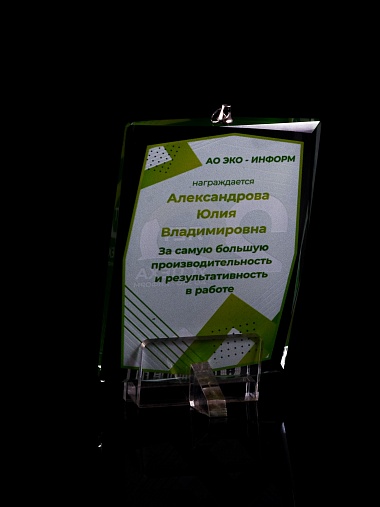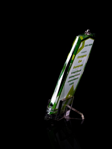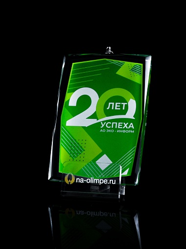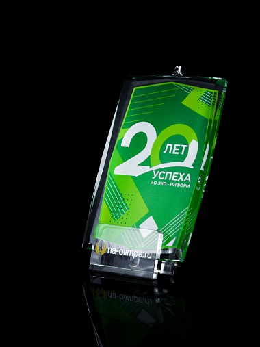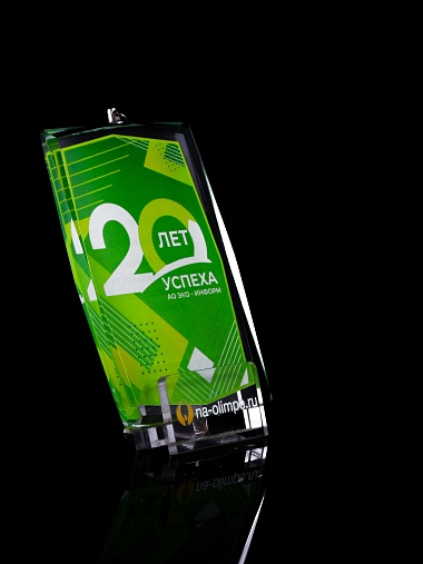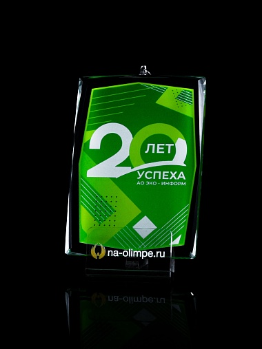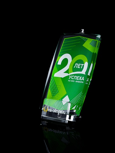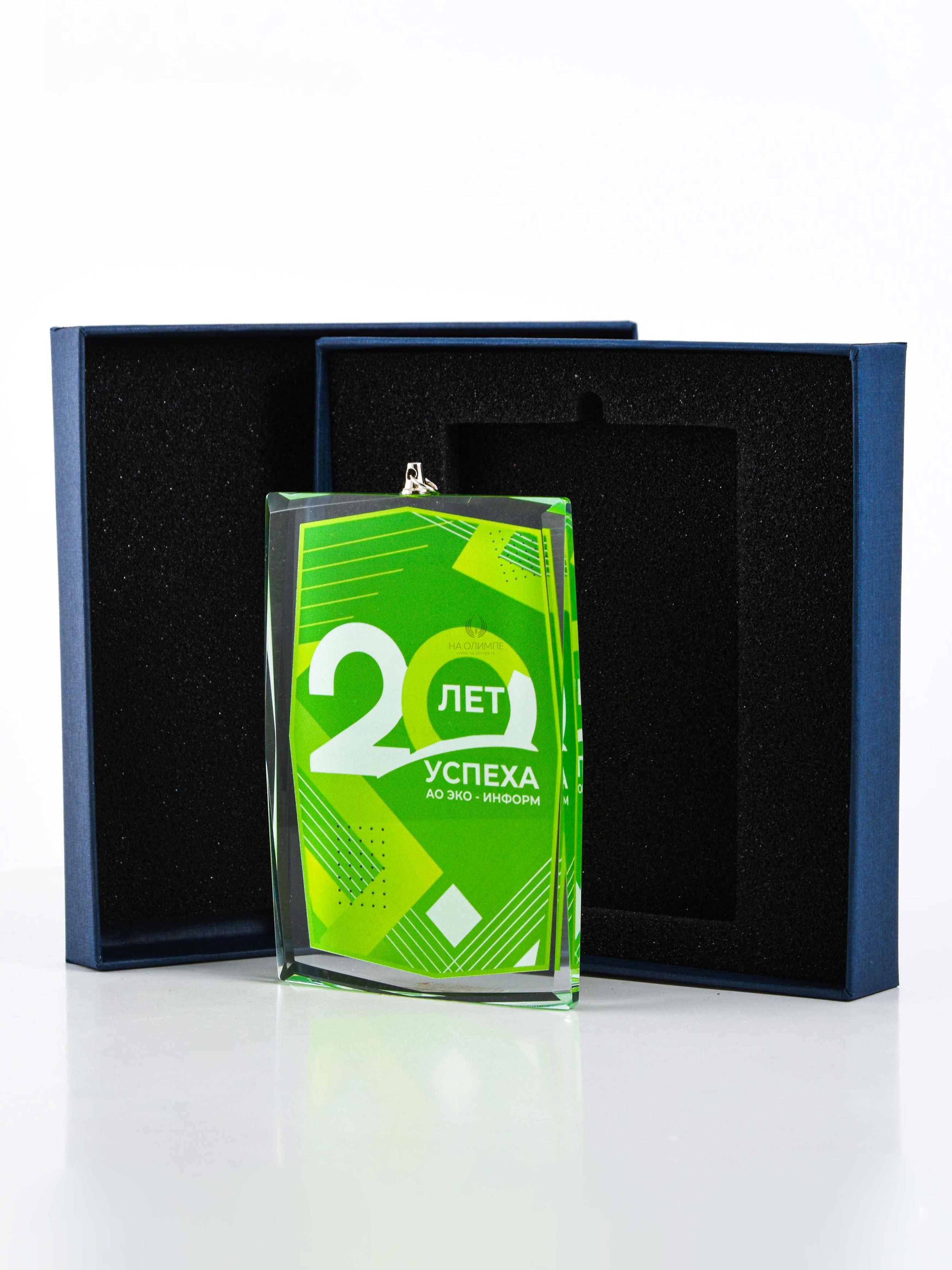 Медаль из стекла, толщиной 8 мм. с полноцветной печатью. Печать выполняется на uv-принтере уф-отверждаемыми чернилами. Изображение не выцветает и не желтеет со временем. Высокое качество печати позволяет наносить изображения с большой детализацией, любых цветов включая белый. Изображение наносится на обратную сторону медали дважды, при этом в первый раз зеркально. Благодаря этому информация на медали читается как спереди так и сзади. Например спереди может быть размещена информация о награждаемом человеке, номинация, логотип, а перевернув медаль, мы увидим слова поздравления. Однако обязательным условием подобной техники печати является полностью закрашенный фон, это нужно для того, чтобы передняя печать не мешала читаемости задней. Несомненным плюсом этого способа печати является возможность разместить большое количество информации на одной награде. Размер стеклянной части 10х7 см. Поставляется в комплекте с подарочным футляром (цвет футляра и подложка могут отличаться), лента в комплект не входит и заказывается отдельно. Вес награды без футляра 133гр.