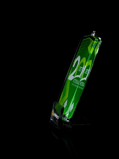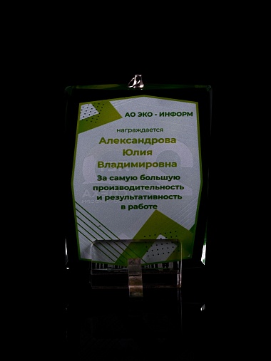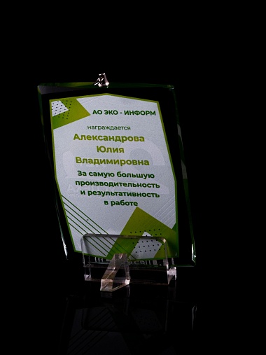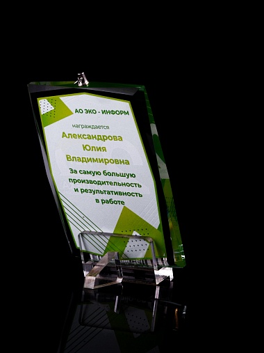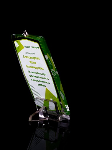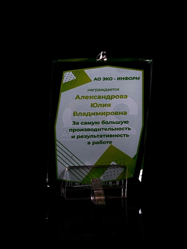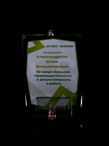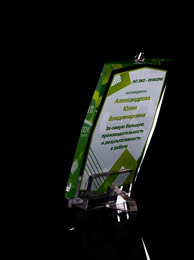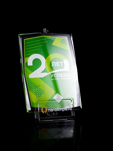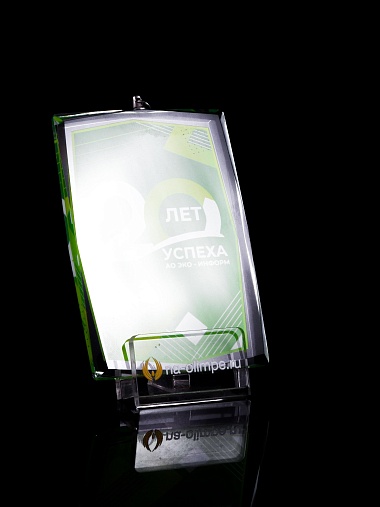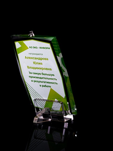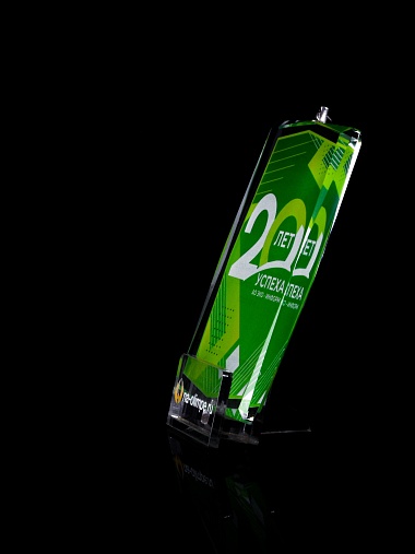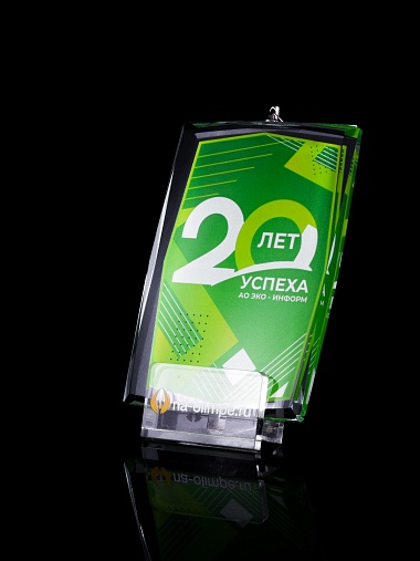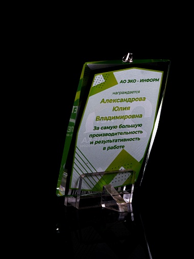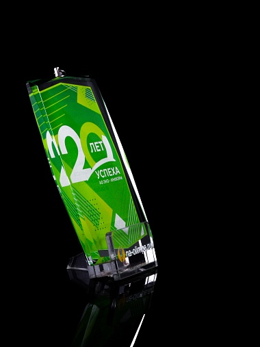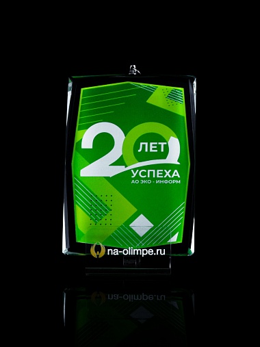 Медаль из стекла, толщиной 8 мм. с полноцветной печатью. Печать выполняется на uv-принтере уф-отверждаемыми чернилами. Изображение не выцветает и не желтеет со временем. Высокое качество печати позволяет наносить изображения с большой детализацией, любых цветов включая белый. Изображение наносится на обратную сторону медали дважды, при этом в первый раз зеркально. Благодаря этому информация на медали читается как спереди так и сзади. Например спереди может быть размещена информация о награждаемом человеке, номинация, логотип, а перевернув медаль, мы увидим слова поздравления. Однако обязательным условием подобной техники печати является полностью закрашенный фон, это нужно для того, чтобы передняя печать не мешала читаемости задней. Несомненным плюсом этого способа печати является возможность разместить большое количество информации на одной награде. Размер стеклянной части 10х7 см. Поставляется в комплекте с подарочным футляром (цвет футляра и подложка могут отличаться), лента в комплект не входит и заказывается отдельно. Вес награды без футляра 133гр.
