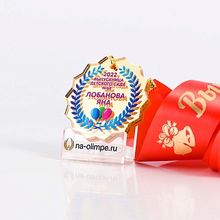 Медаль для выпускника с цветным нанесением в комплекте с сатиновой ленточкой