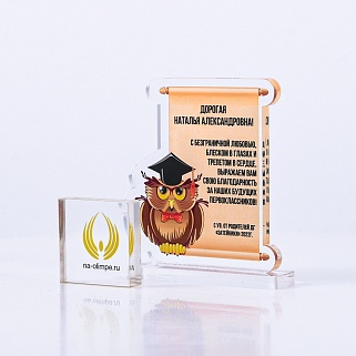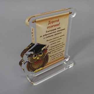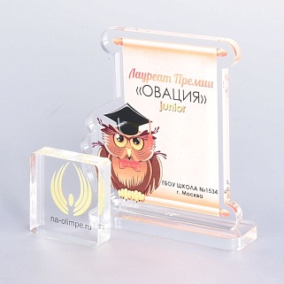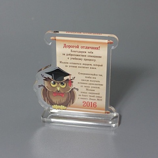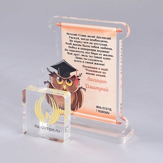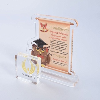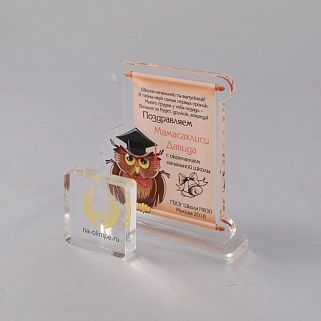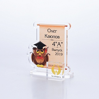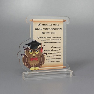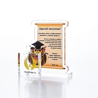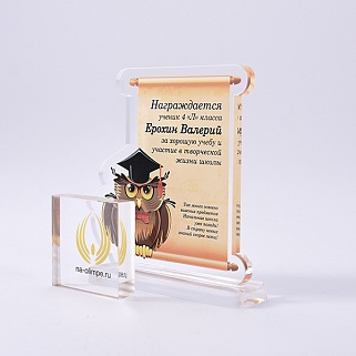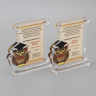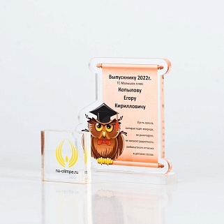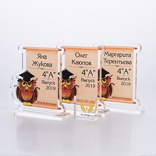Выпускная награда выполнена из акрила толщиной 6 мм с полноцветной цифровой печатью текста по Вашему запросу.