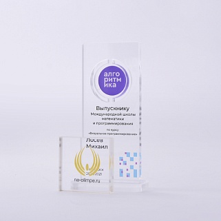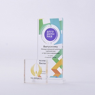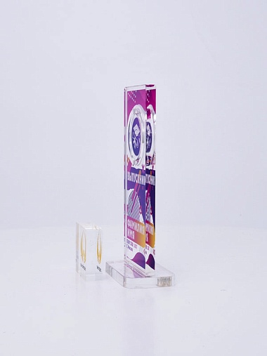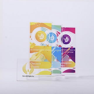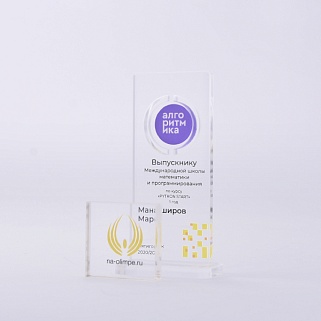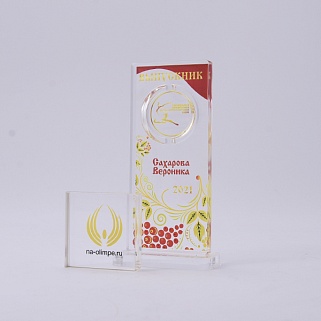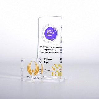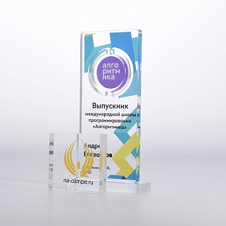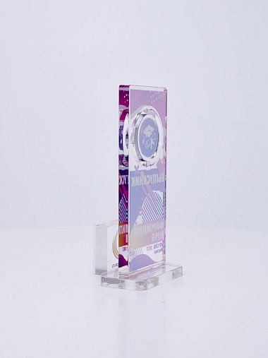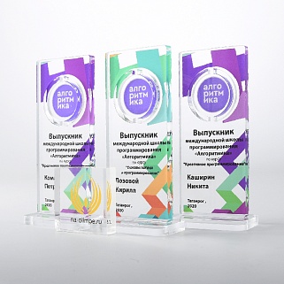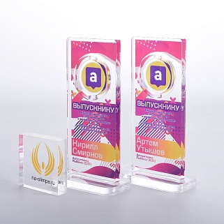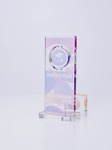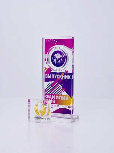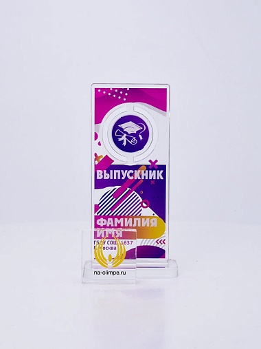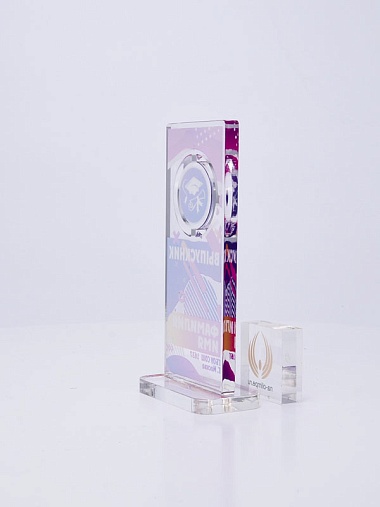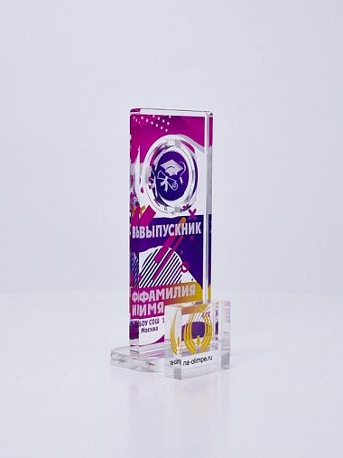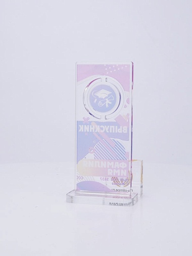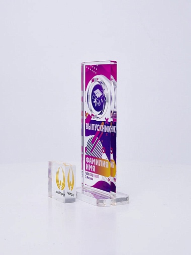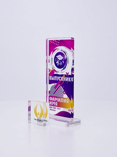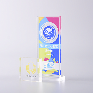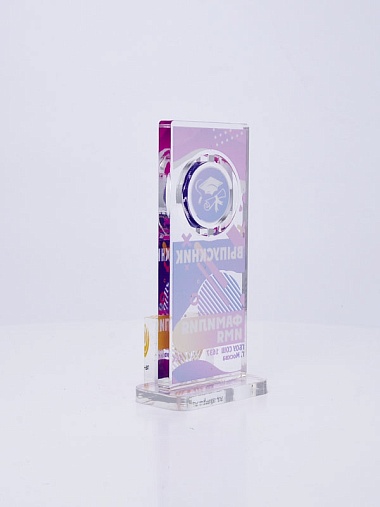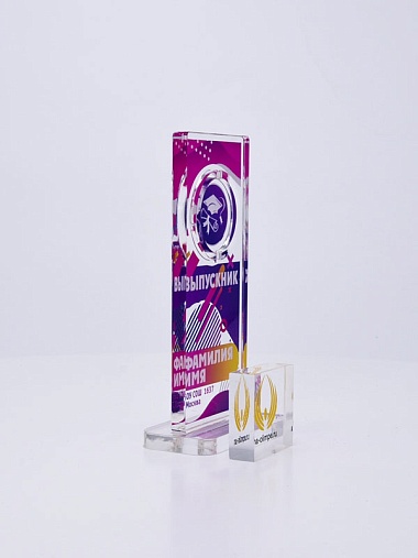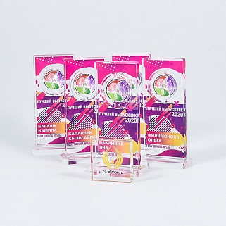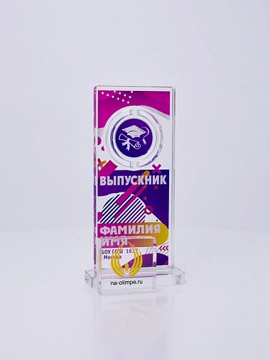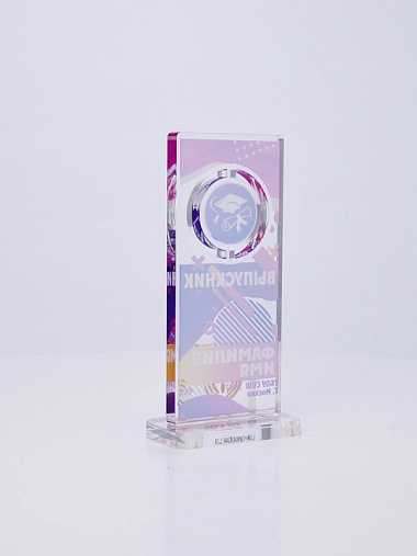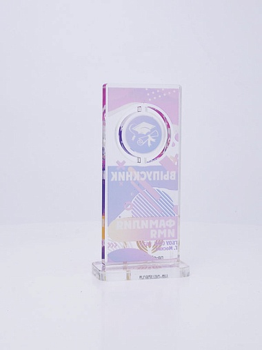 Выпускная награда выполнена из акрила толщиной 6 мм с полноцветной цифровой печатью текста по Вашему запросу.