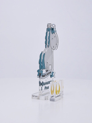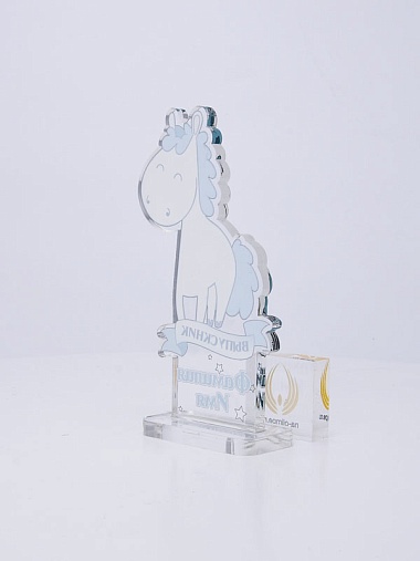 Выпускная награда выполнена из акрила толщиной 6 мм с полноцветной цифровой печатью текста по Вашему запросу.