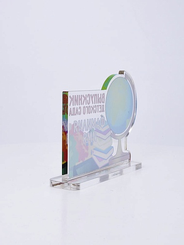 Выпускная награда выполнена из прозрачного акрила с полноцветной цифровой печатью текста по Вашему запросу.