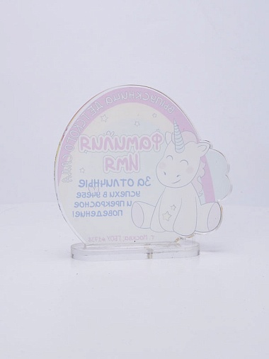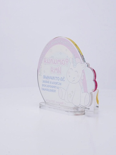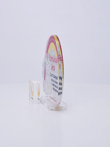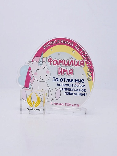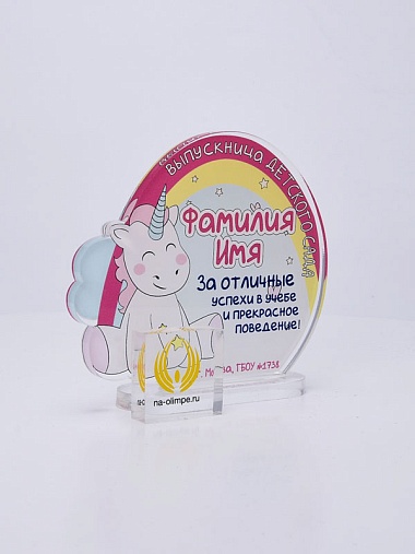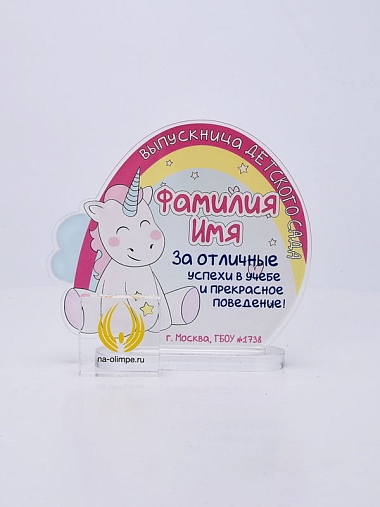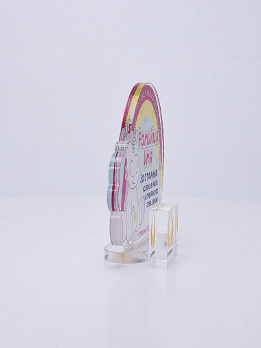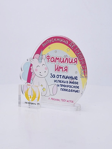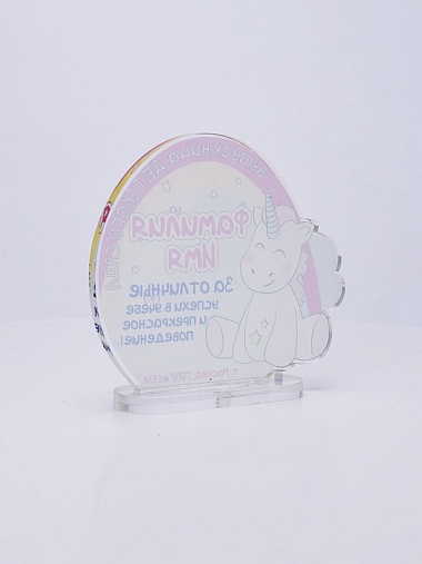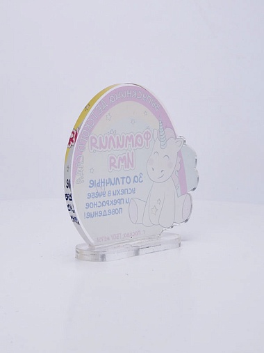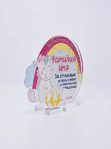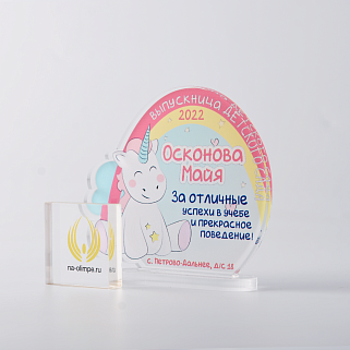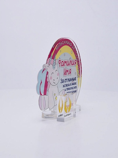 Выпускная награда выполнена из прозрачного акрила 6мм с полноцветной цифровой печатью текста по Вашему запросу.