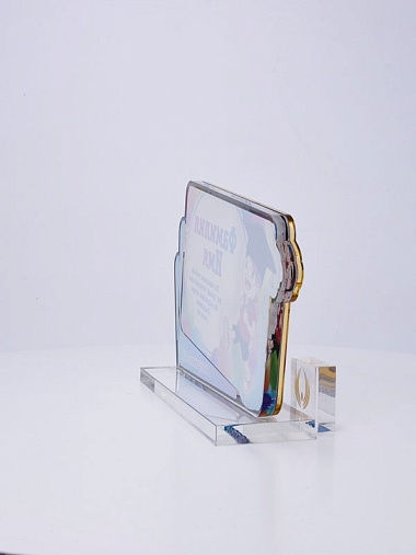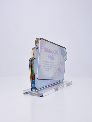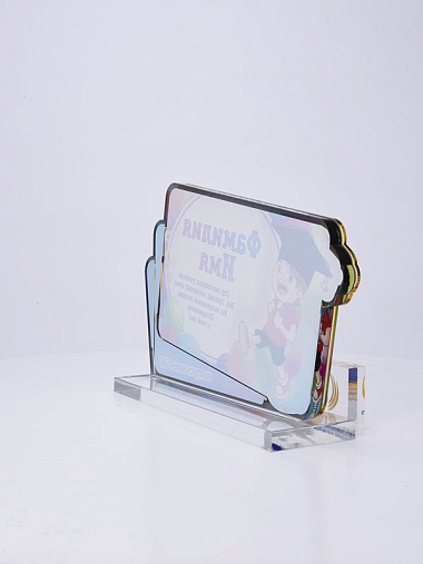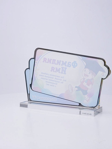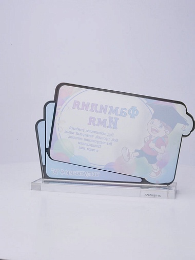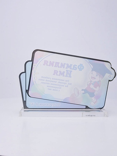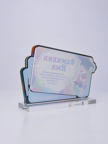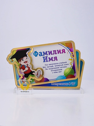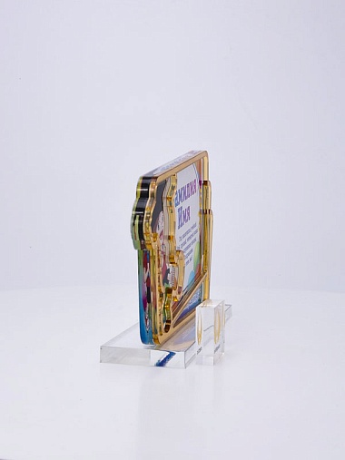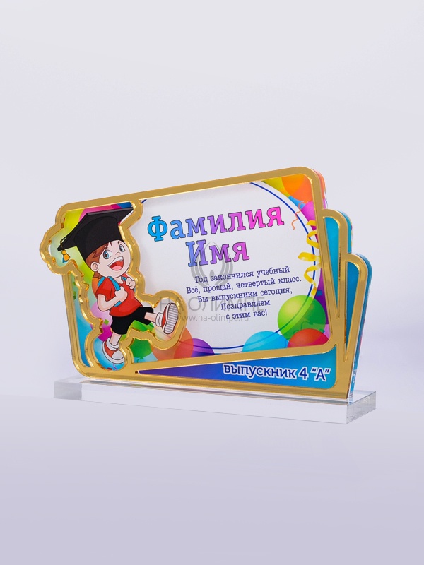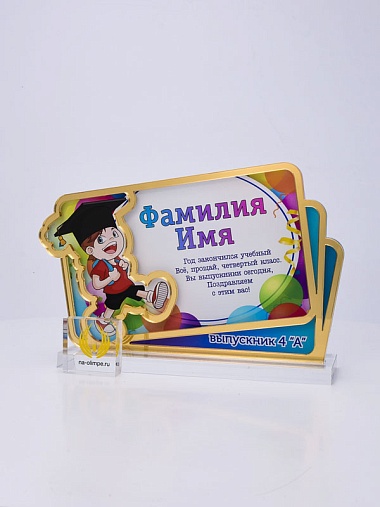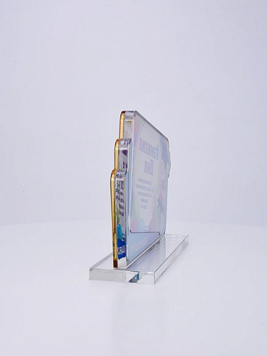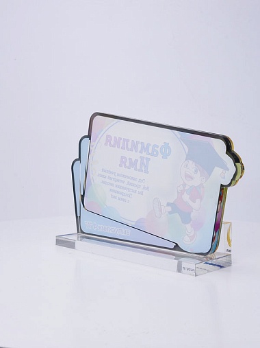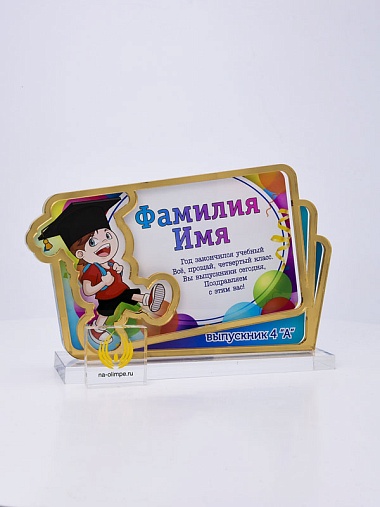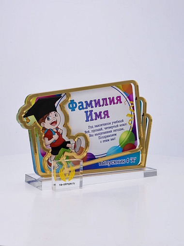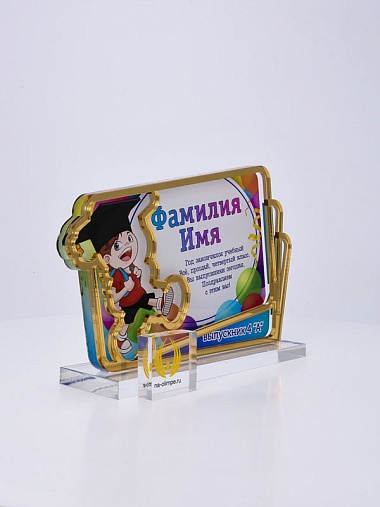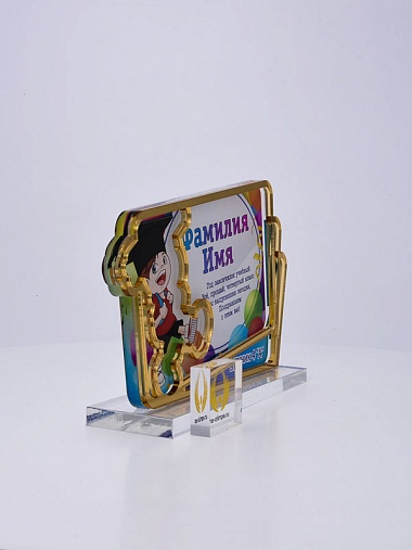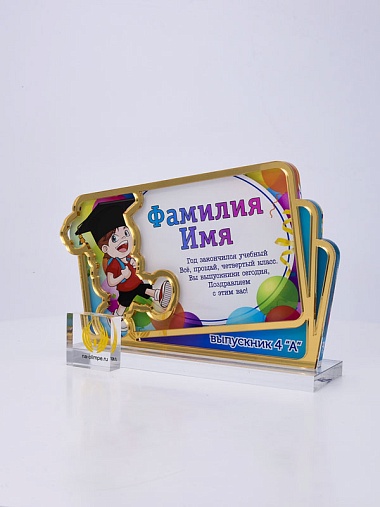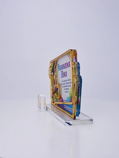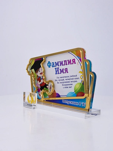Выпускная награда выполнена из золотого и прозрачного акрила с полноцветной цифровой печатью текста по Вашему запросу.