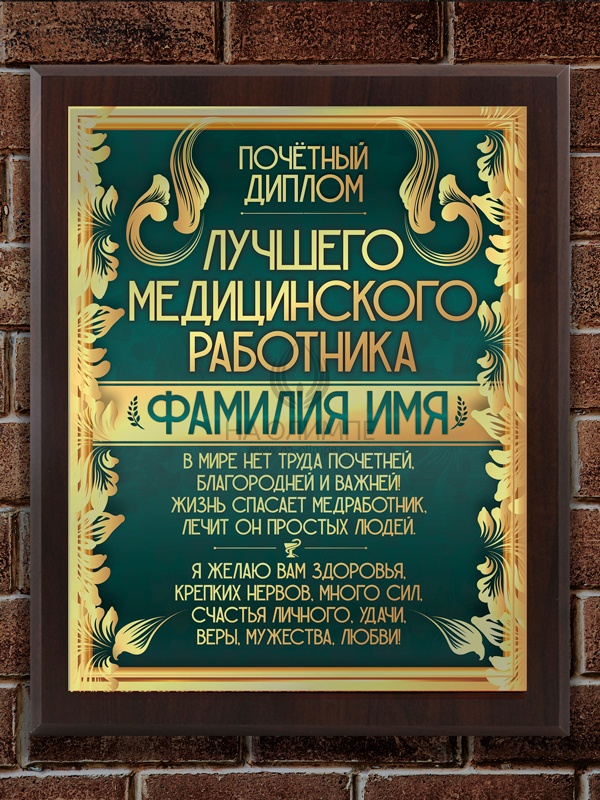 Плакетка "Диплом Медработника", размеры 255*200 мм