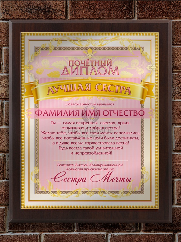 Плакетка "Лучшая сестра", размеры 255*200 мм