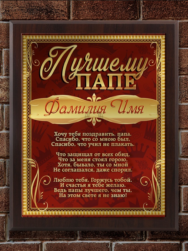 Плакетка "Лучшему папе", размеры 255*200 мм