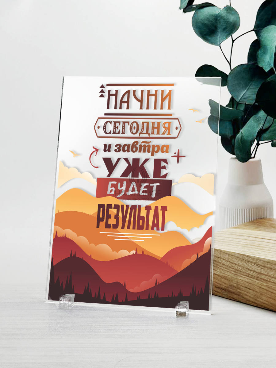 Постер открытка из прозрачного акрила с цветной печатью. В комплект входит прямоугольная пластина из акрила толщиной 3мм с готовым дизайном и две подставки.