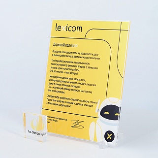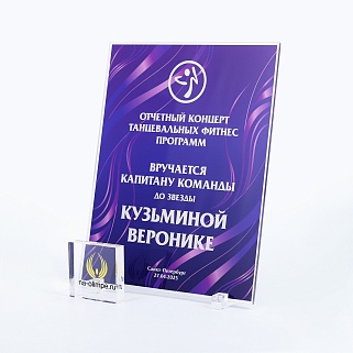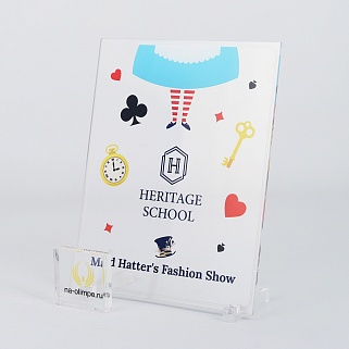 Постер открытка из прозрачного акрила с цветной печатью по вашему заданию. В комплект входит прямоугольная пластина из акрила толщиной 3мм с дизайном по вашему заданию и две подставки.