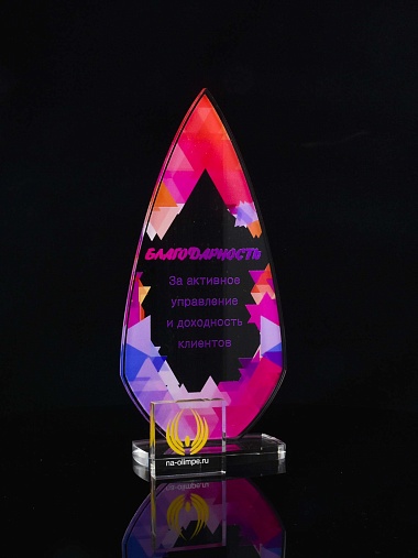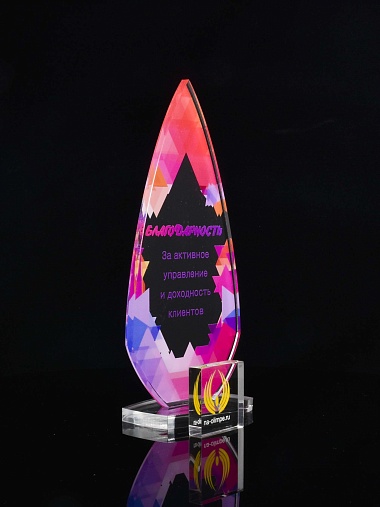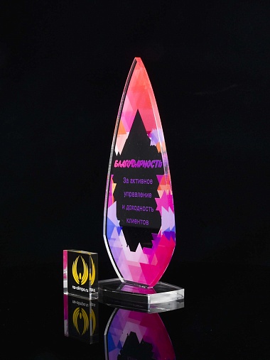 Приз из акрила 02-210 с цветной печатью, высота 21 см