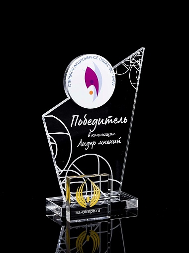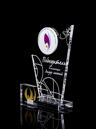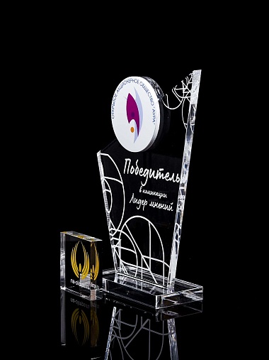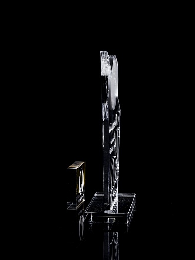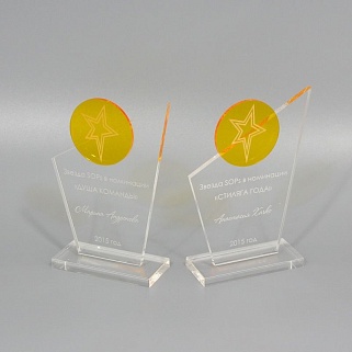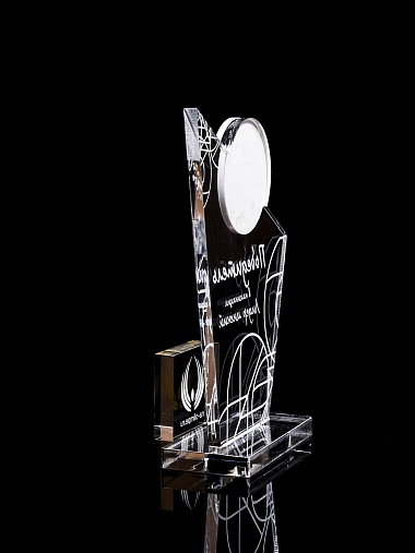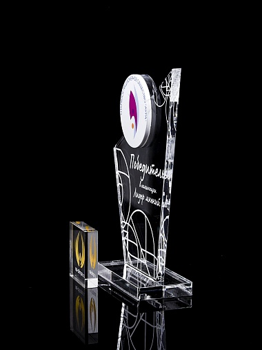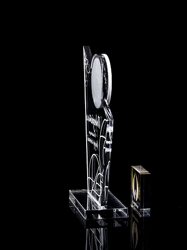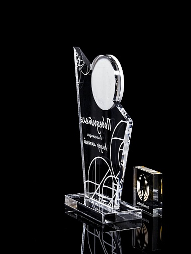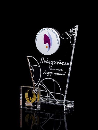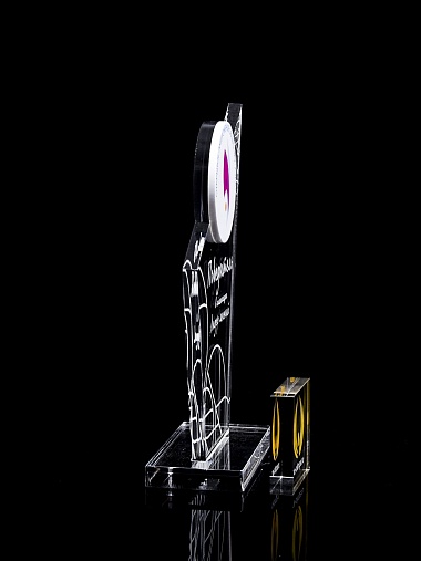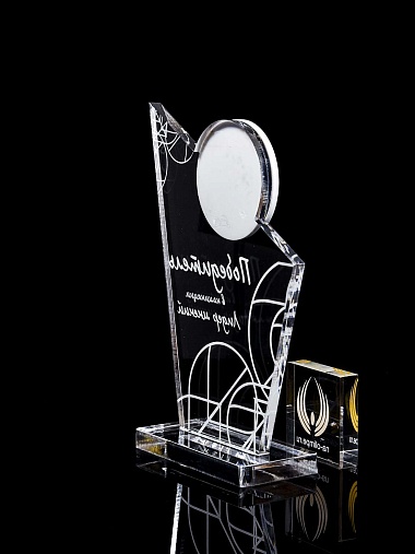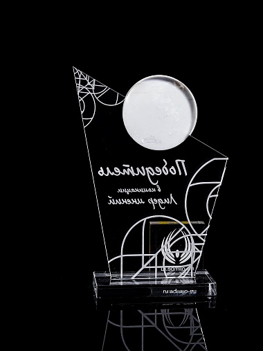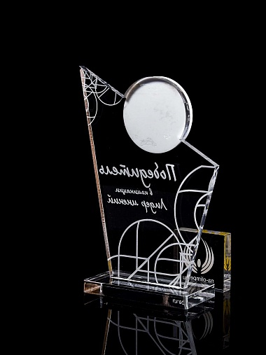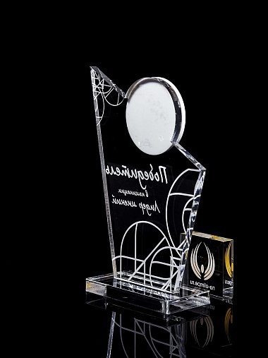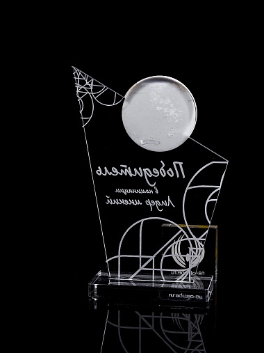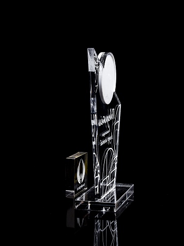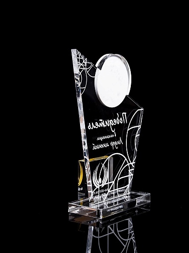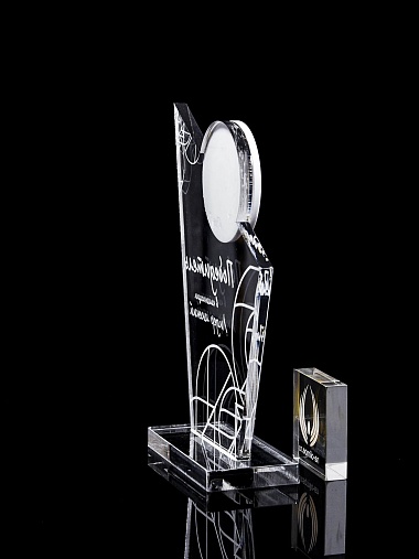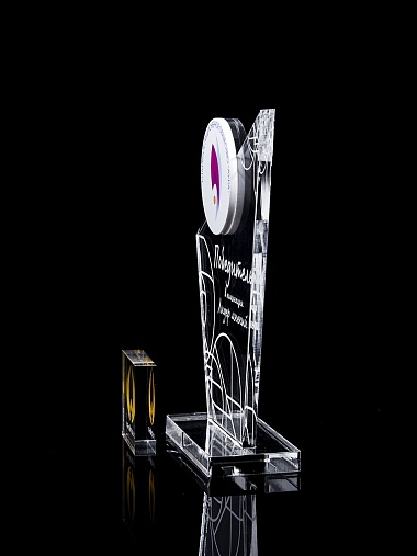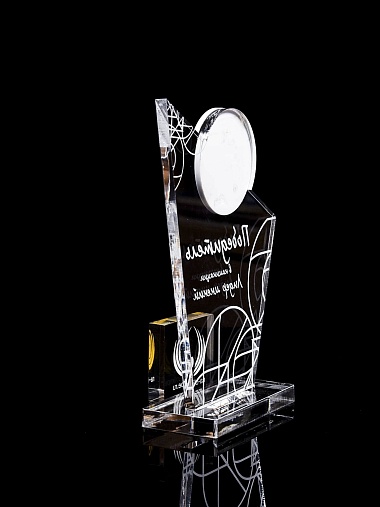 Приз из прозрачного и цветного акрила с лазерной гравировкой.