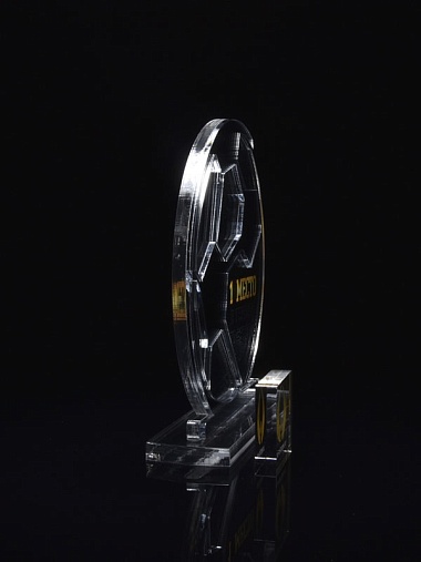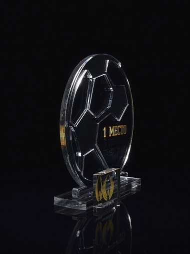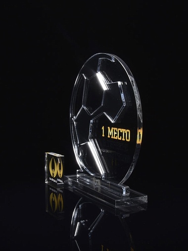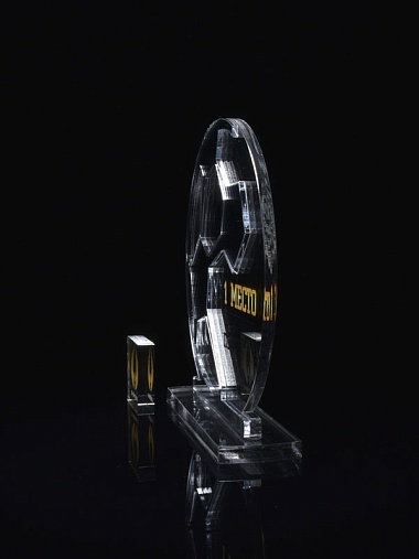 Приз из серебряного и прозрачного акрила с цветным нанесением.