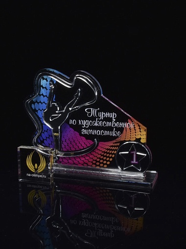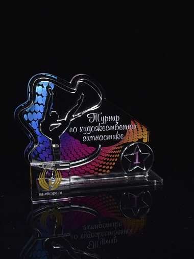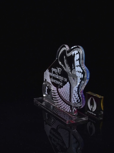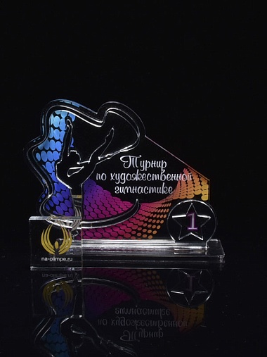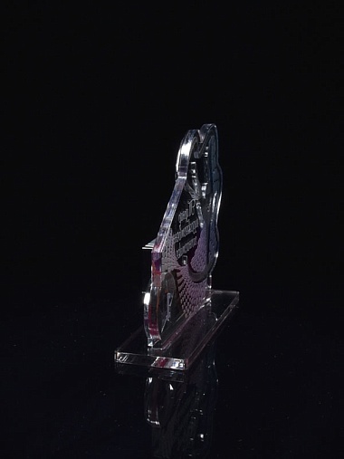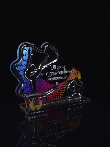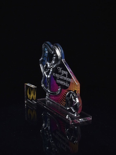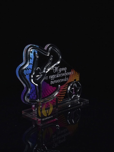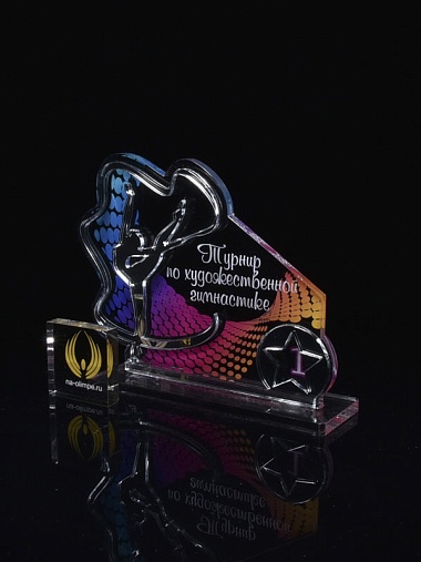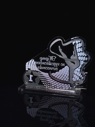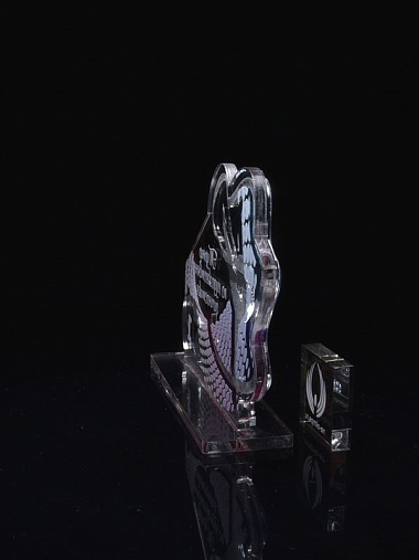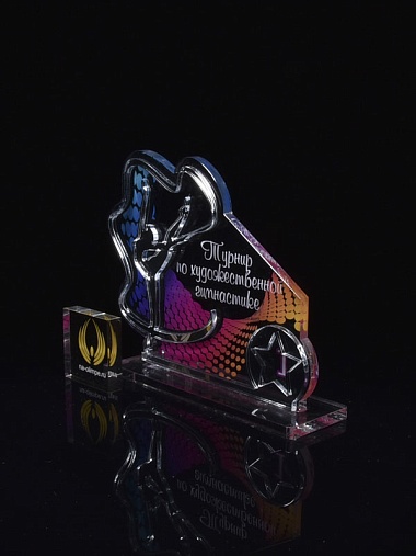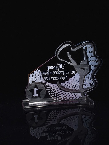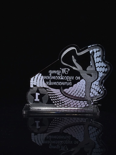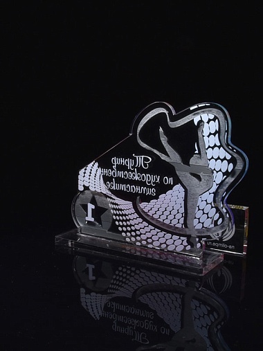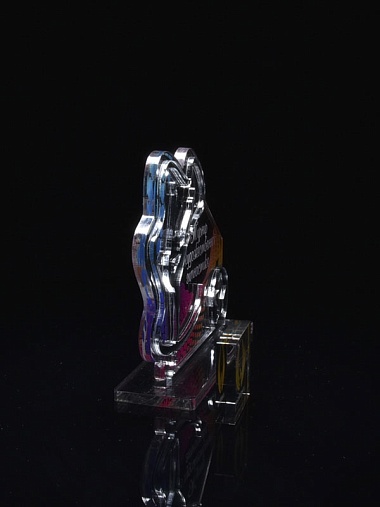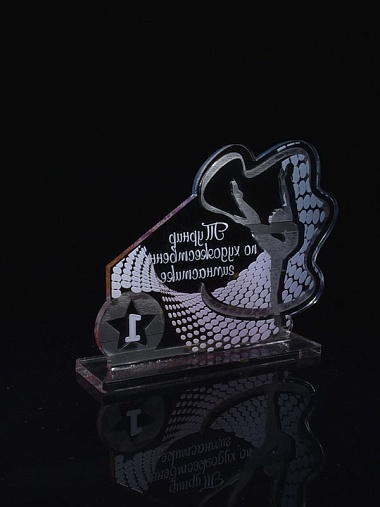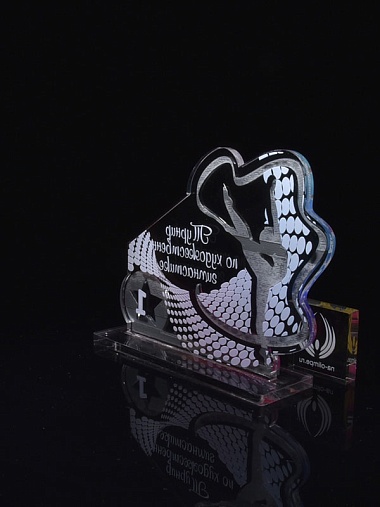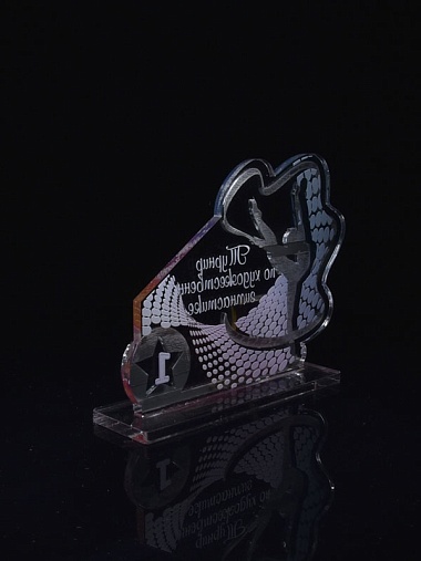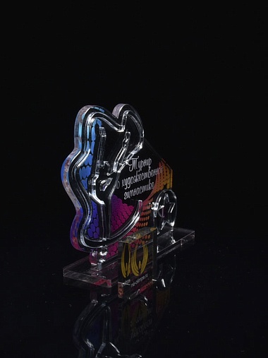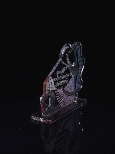 Приз из серебряного и прозрачного акрила с цветным нанесением.