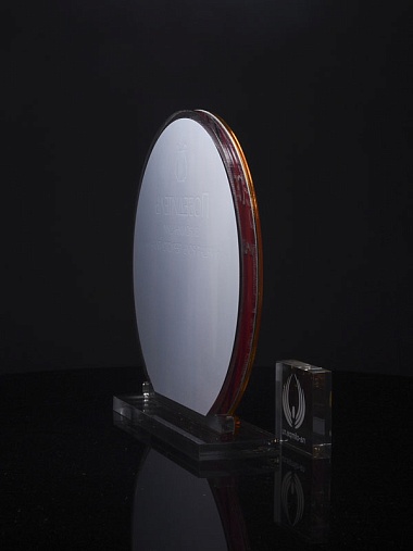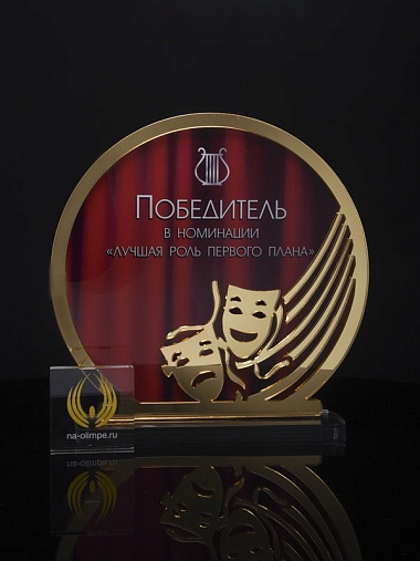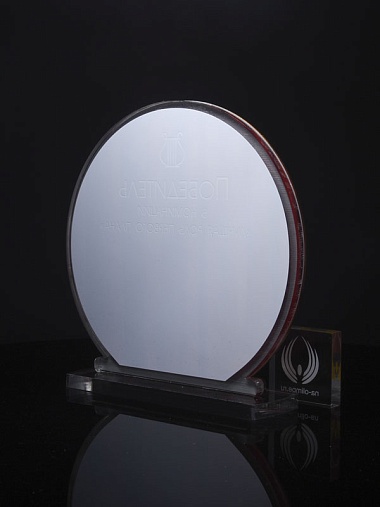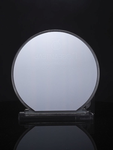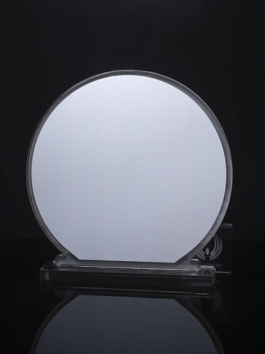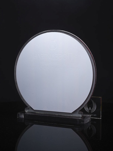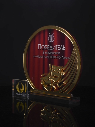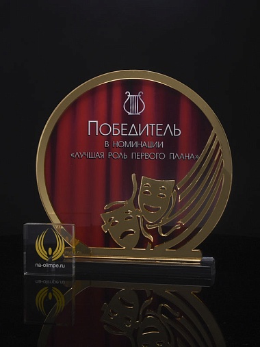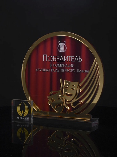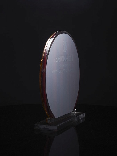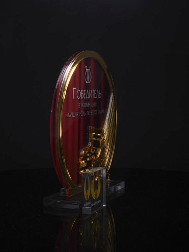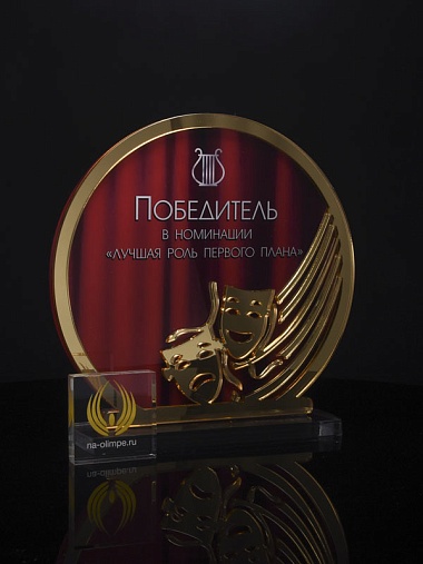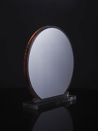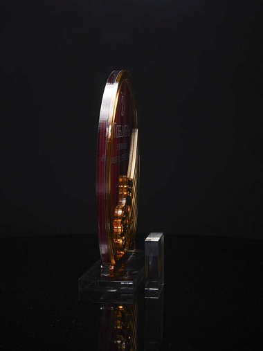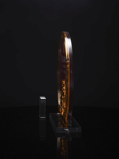 Приз из золотого и прозрачного акрила с цветным нанесением.