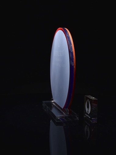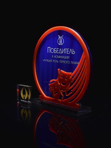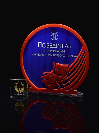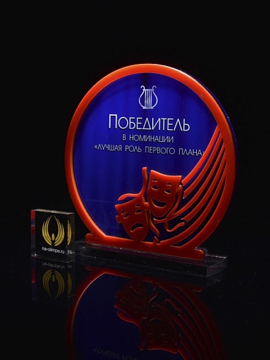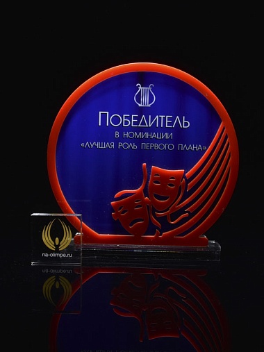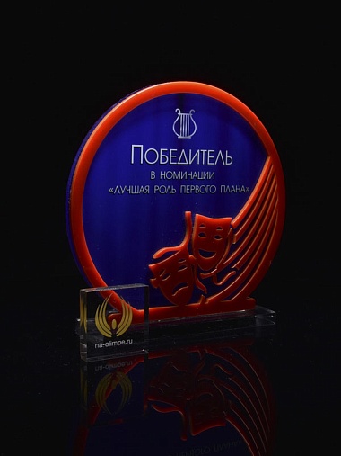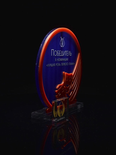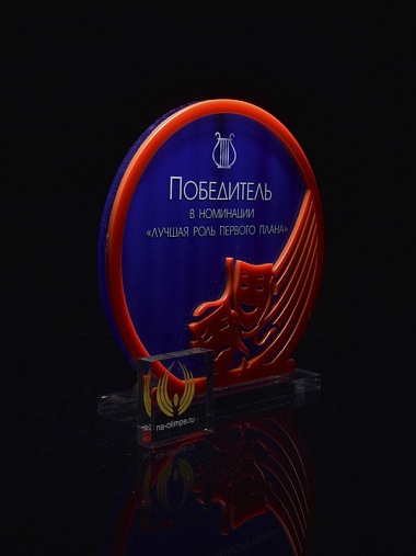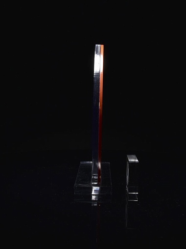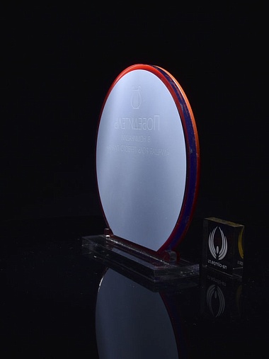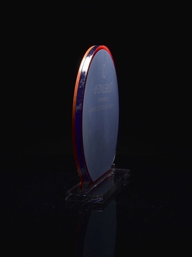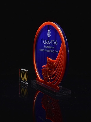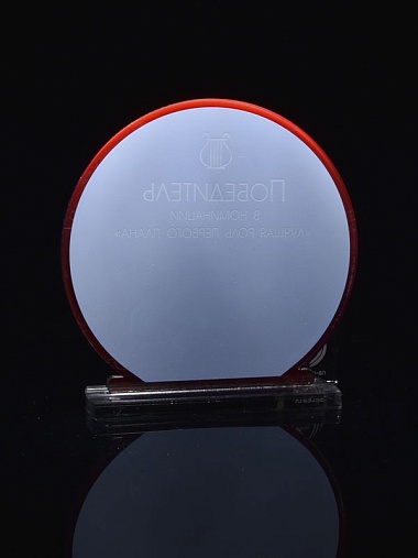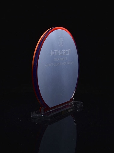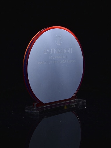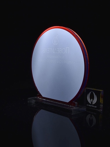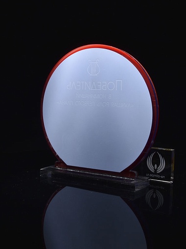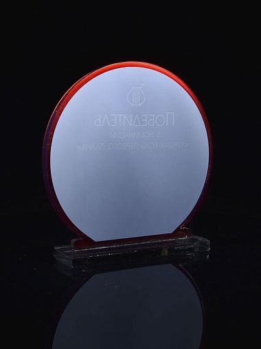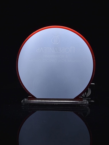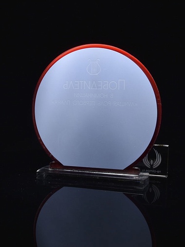 Приз из красного и прозрачного акрила с цветным нанесением.