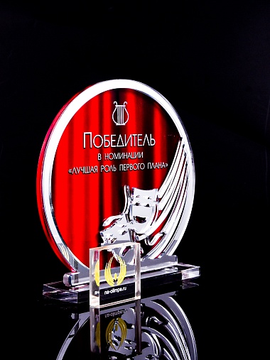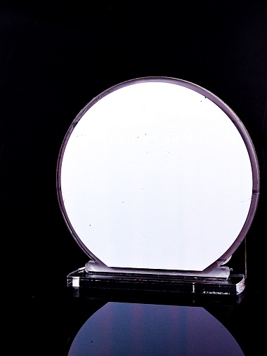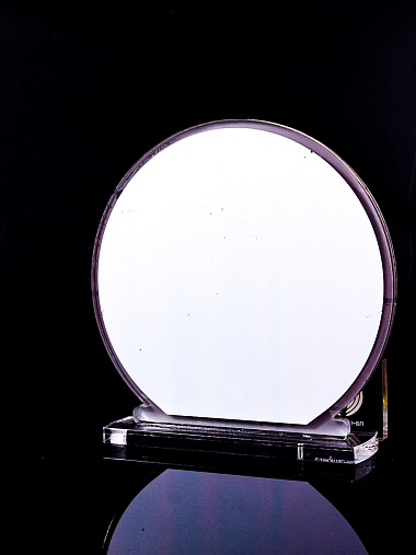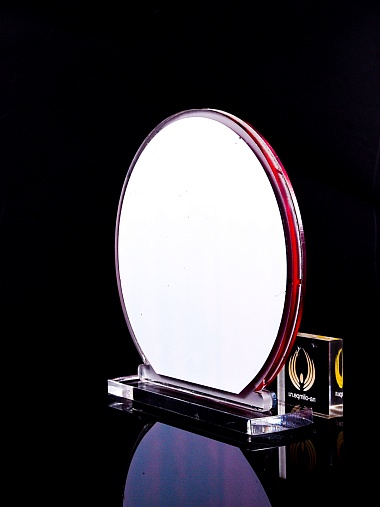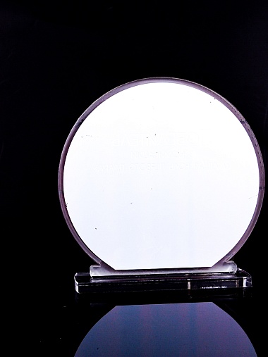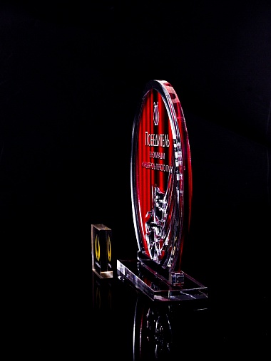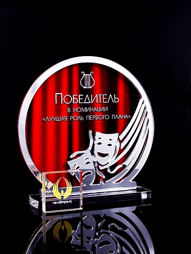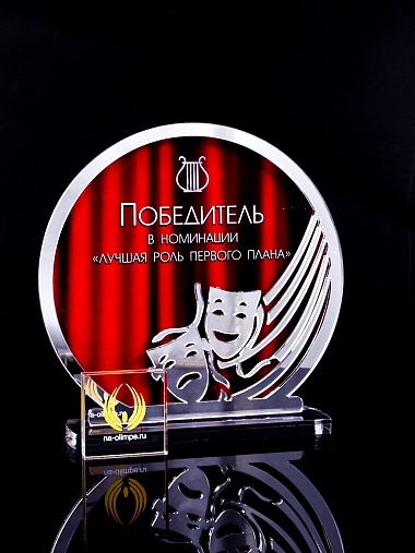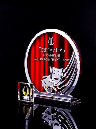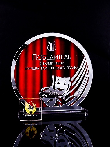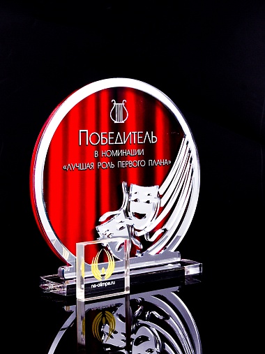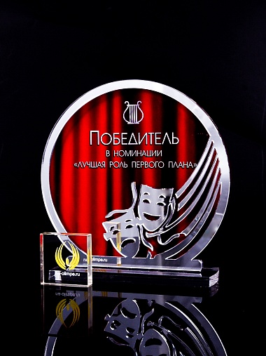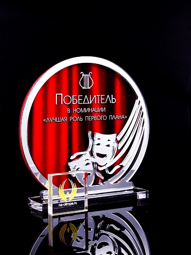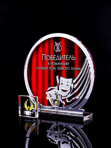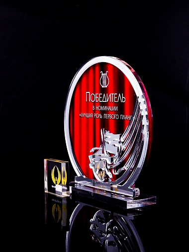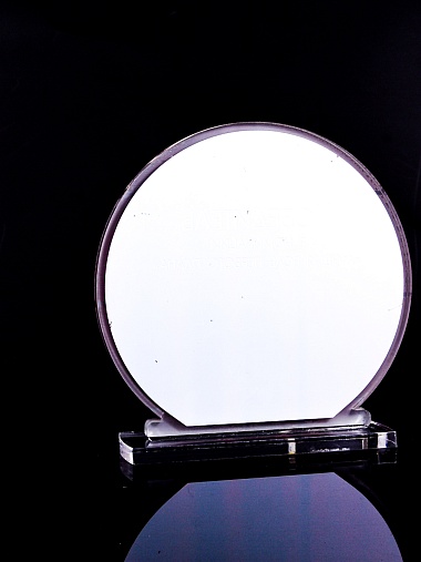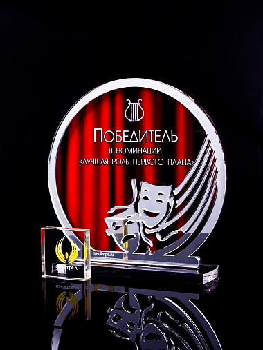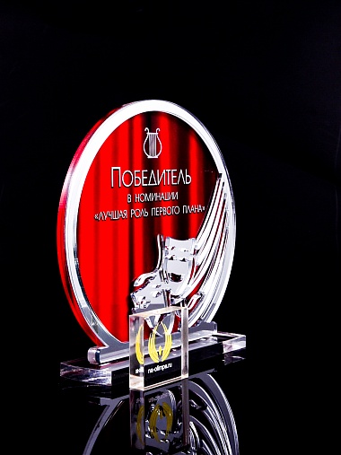 Приз из серебряного и прозрачного акрила с цветным нанесением.