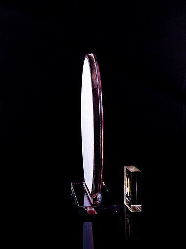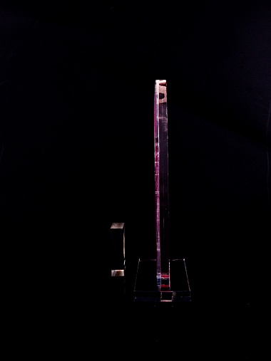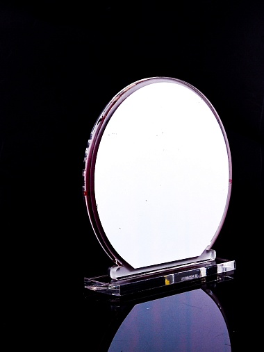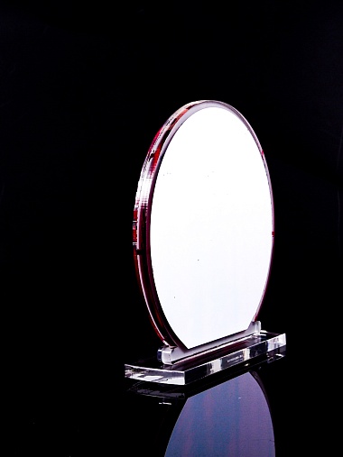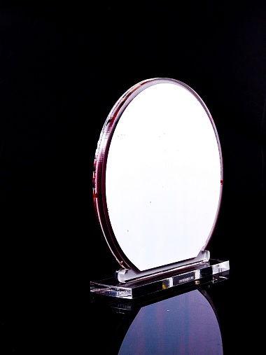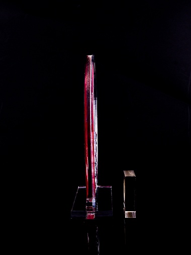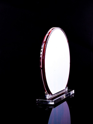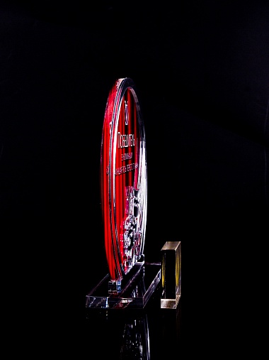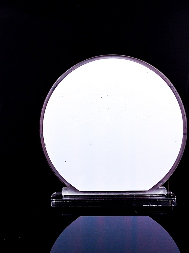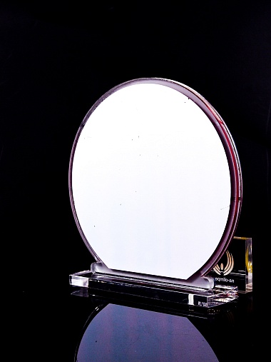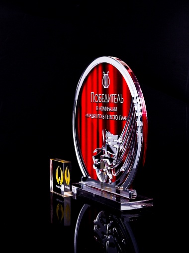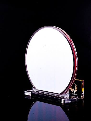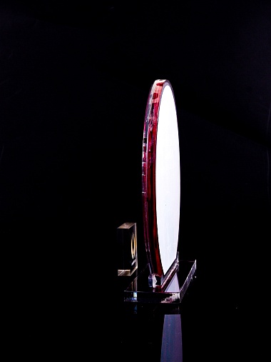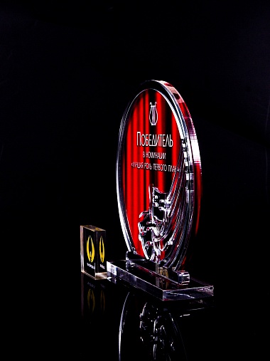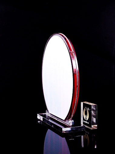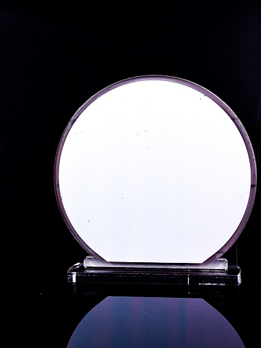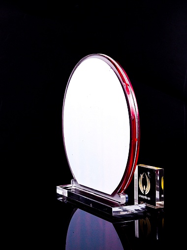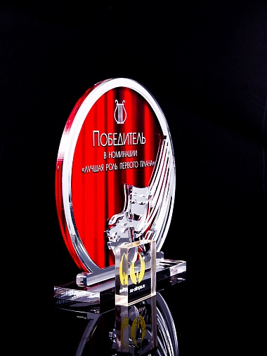 Приз из серебряного и прозрачного акрила с цветным нанесением.