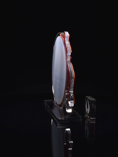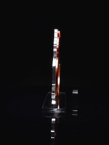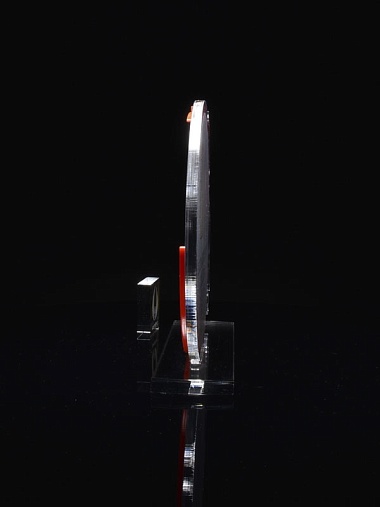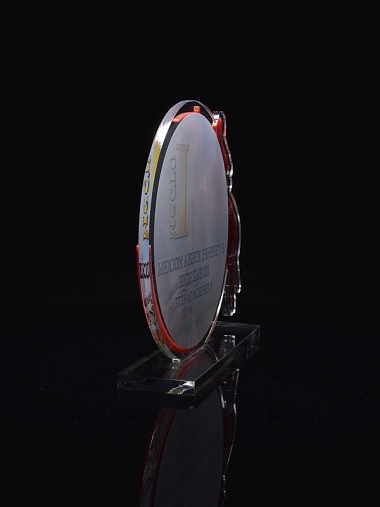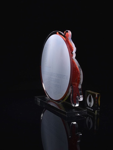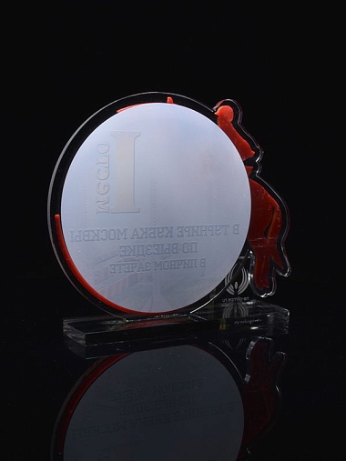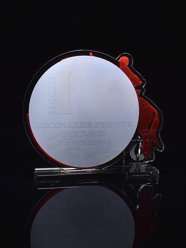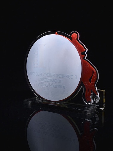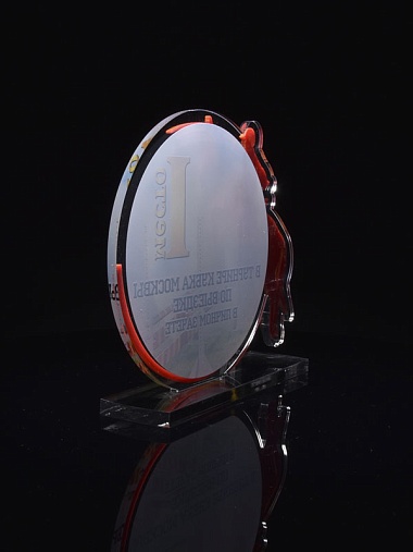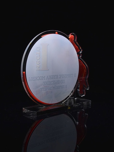 Приз из красного и прозрачного акрила с цветным нанесением.