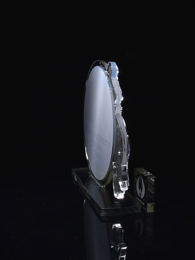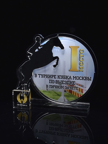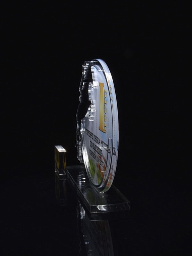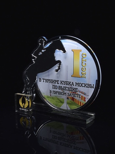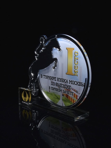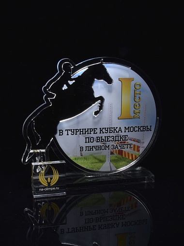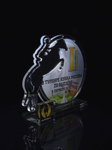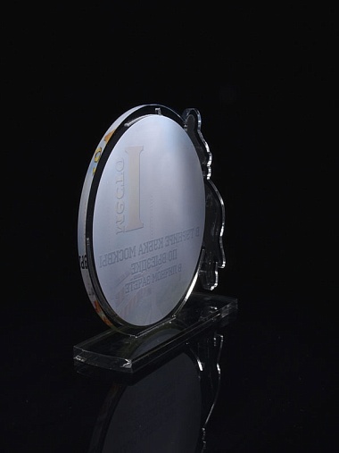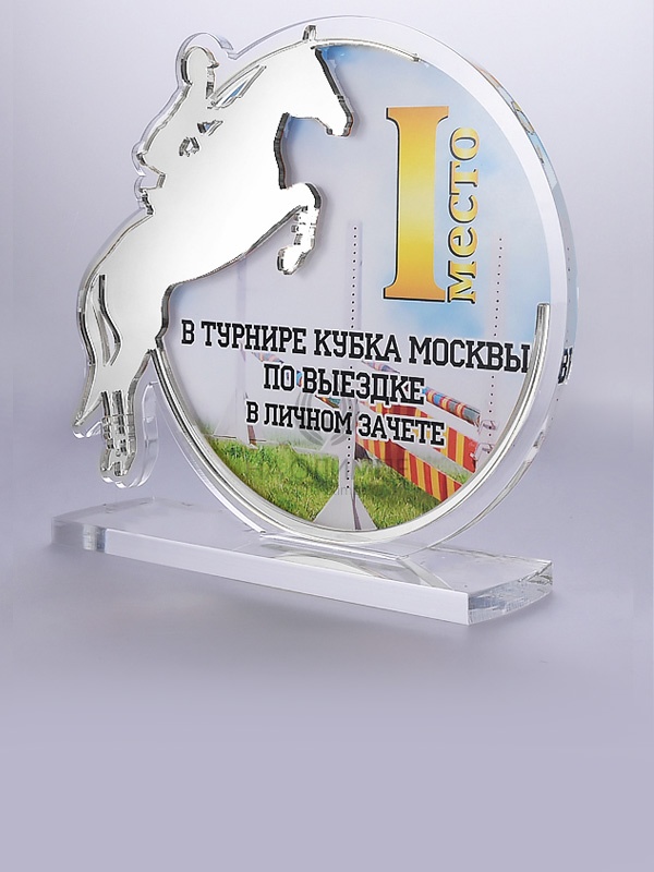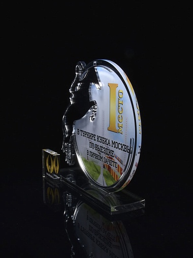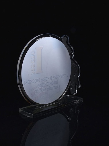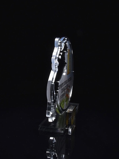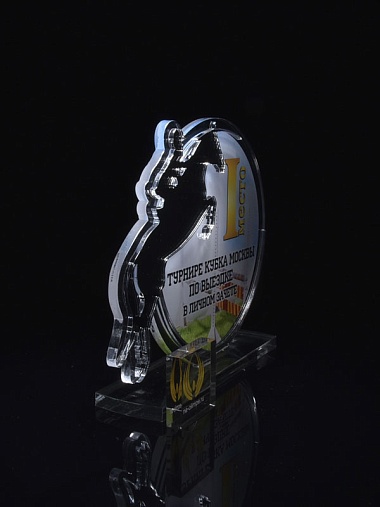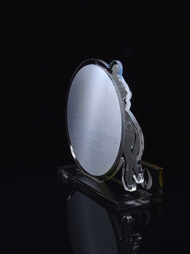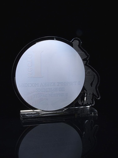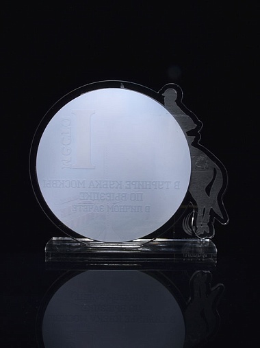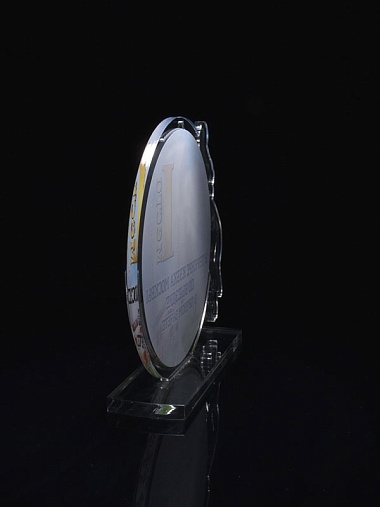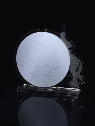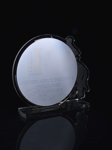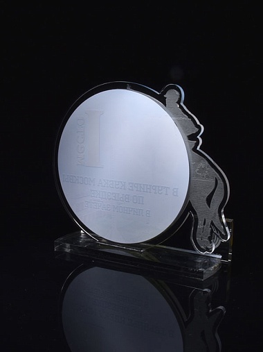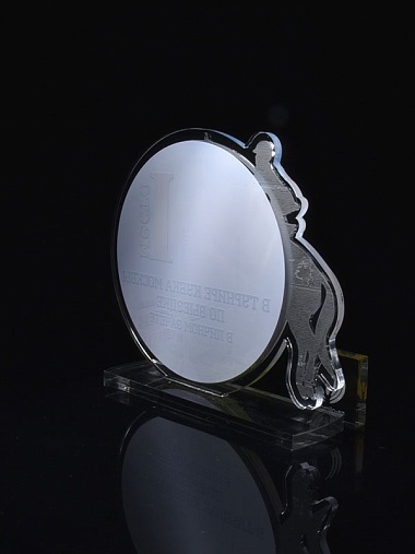 Приз из серебряного и прозрачного акрила с цветным нанесением.