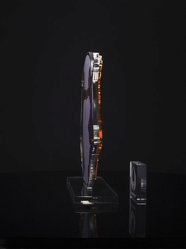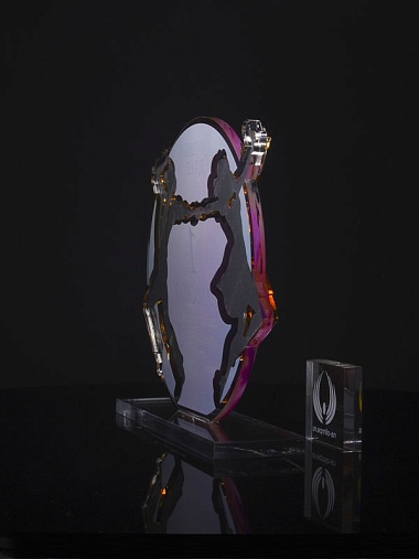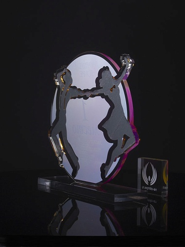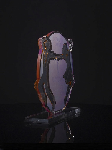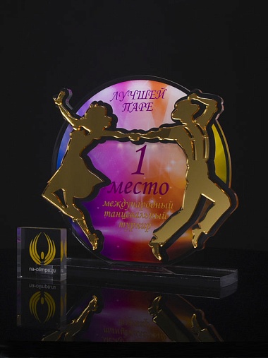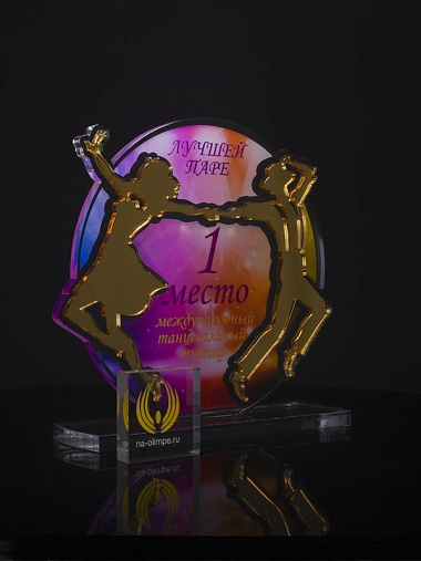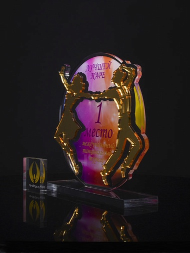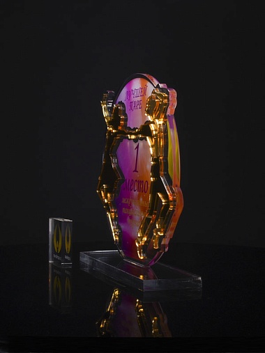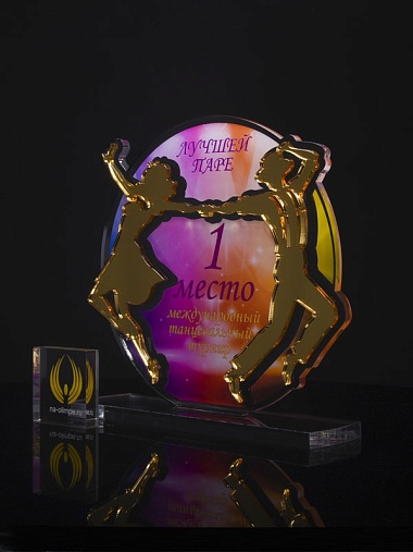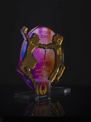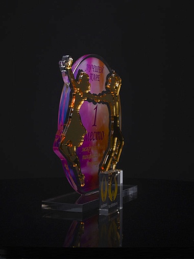 Приз из золотого и прозрачного акрила с цветным нанесением.