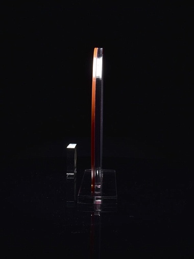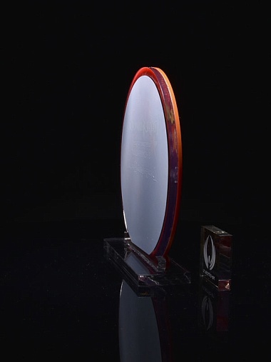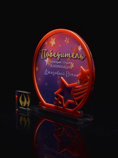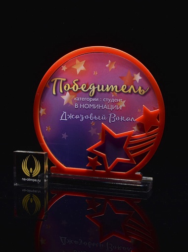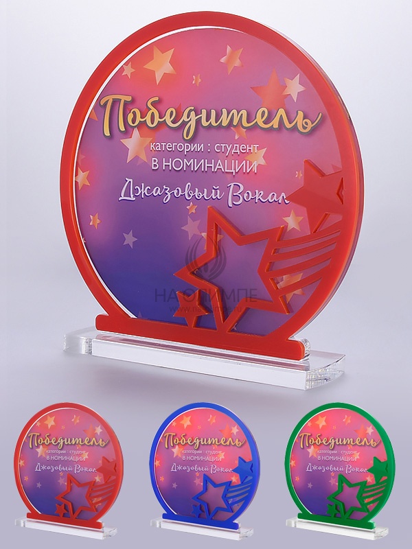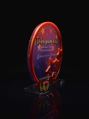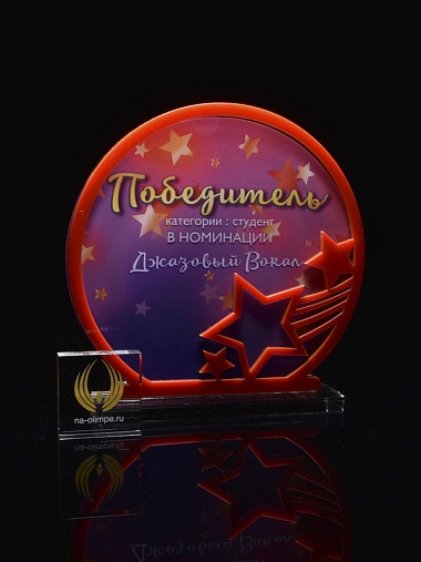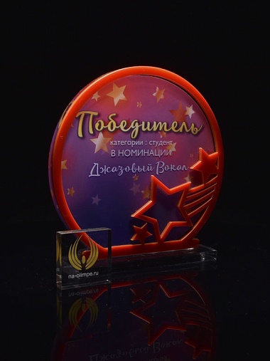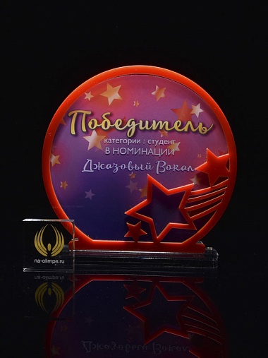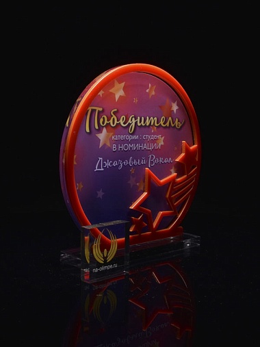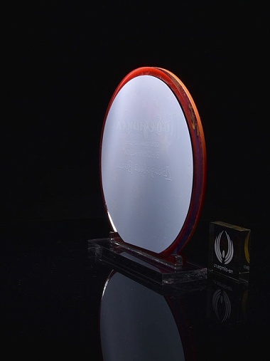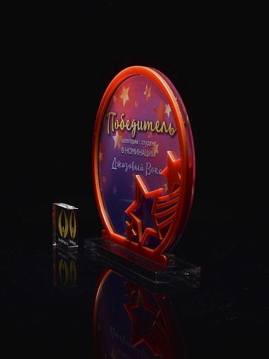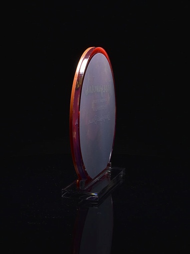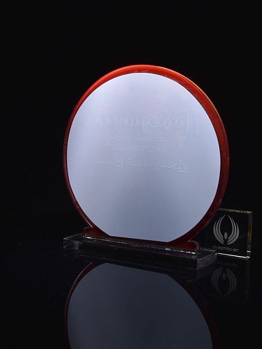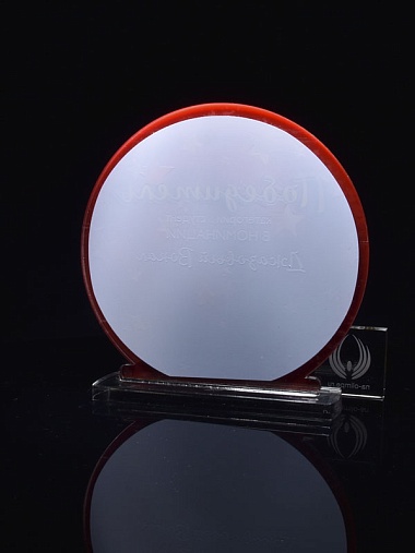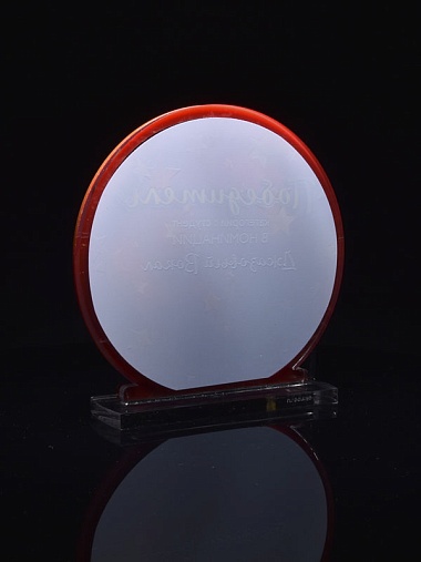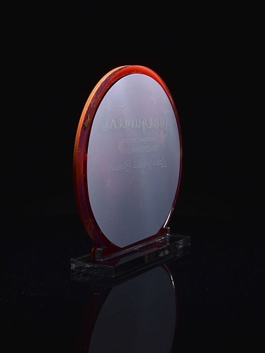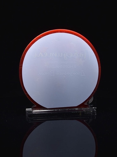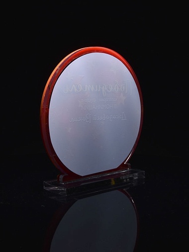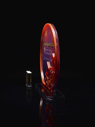 Приз из красного и прозрачного акрила с цветным нанесением.