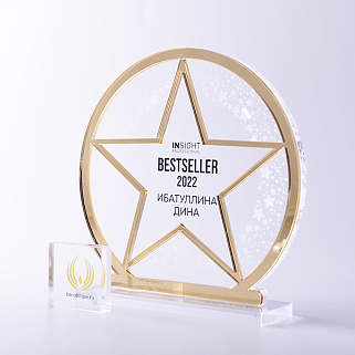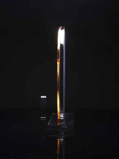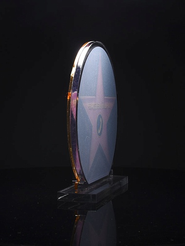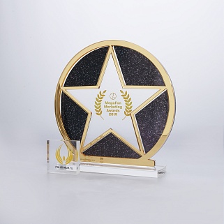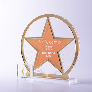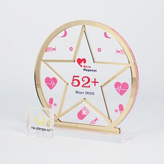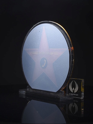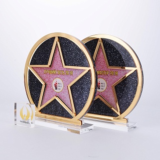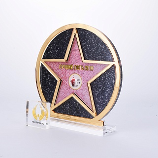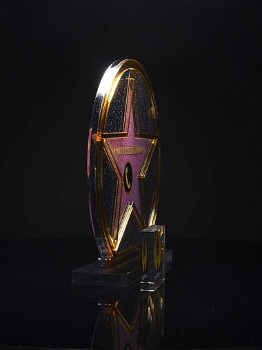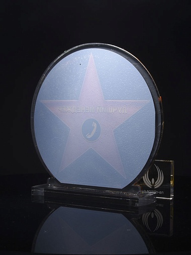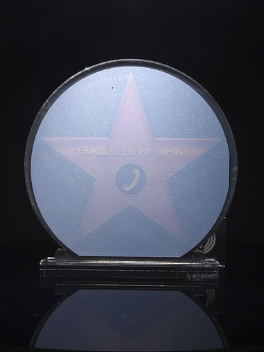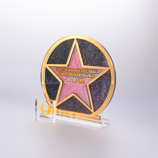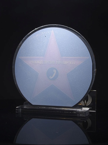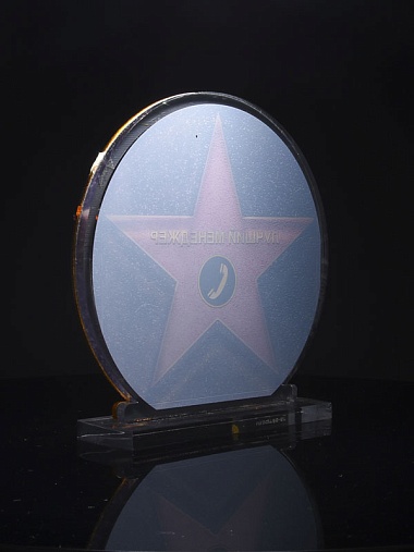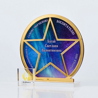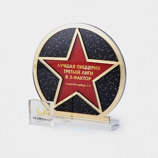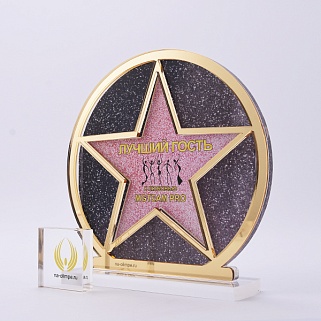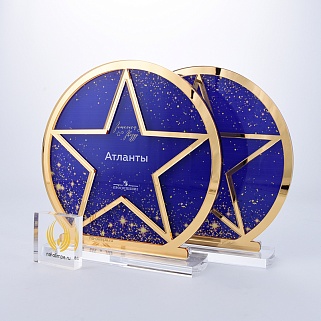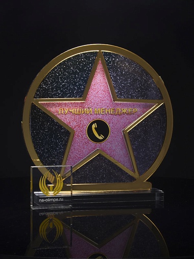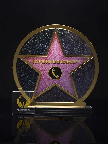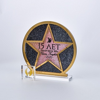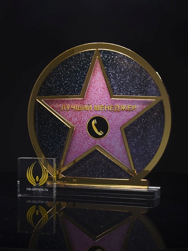 Приз из золотого и прозрачного акрила с цветным нанесением.