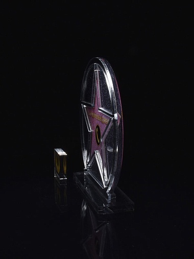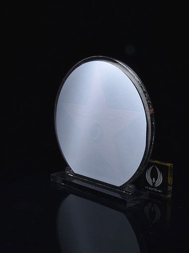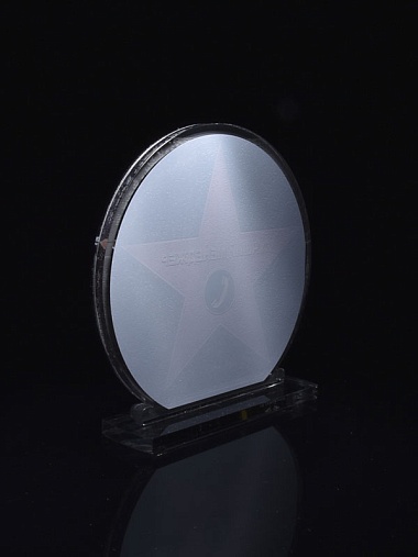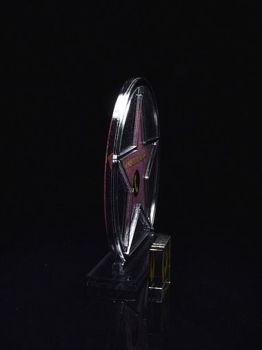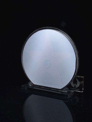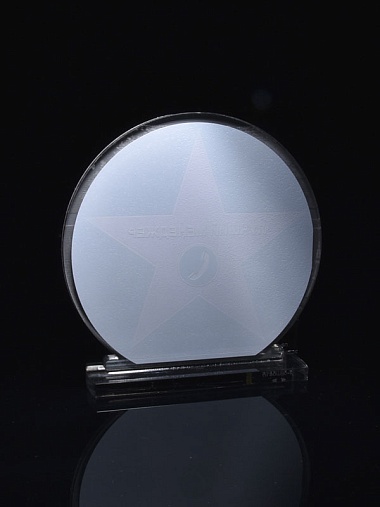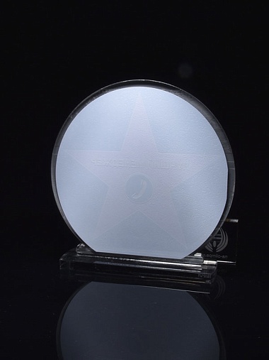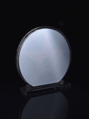 Приз из серебряного и прозрачного акрила с цветным нанесением.