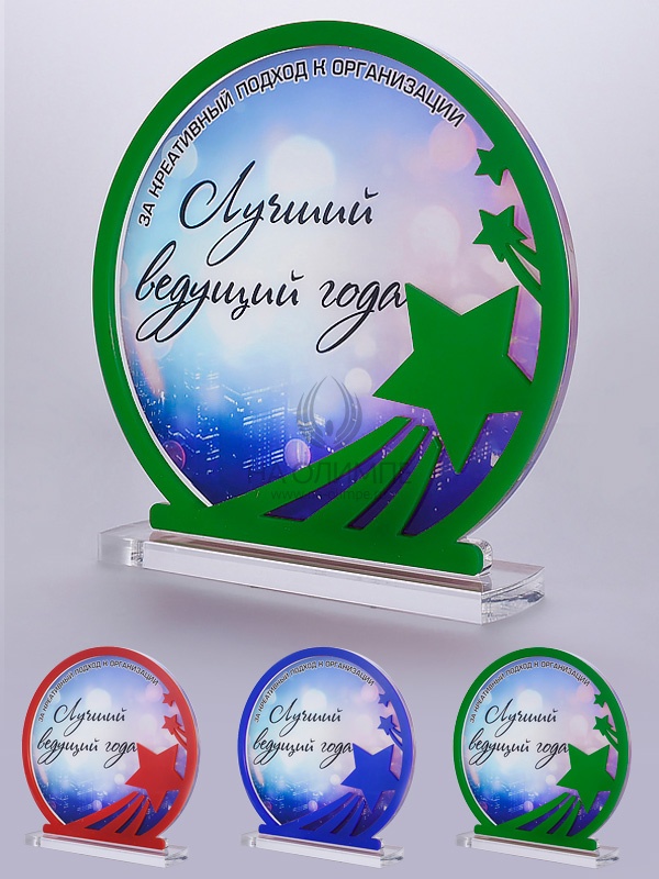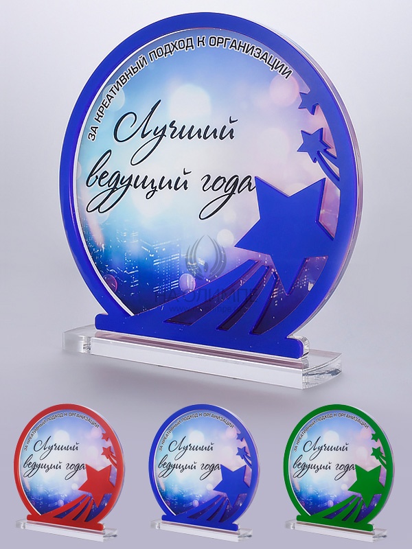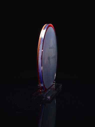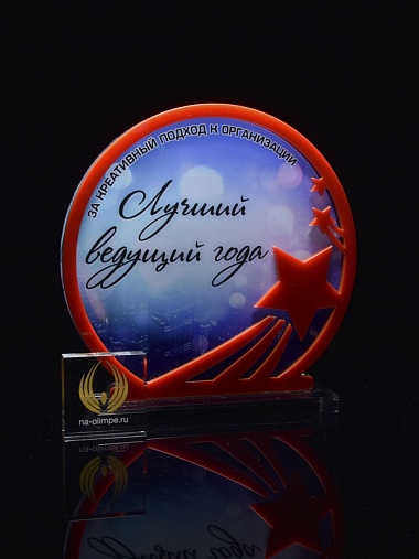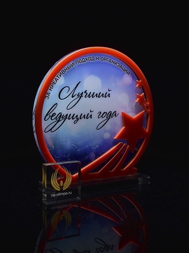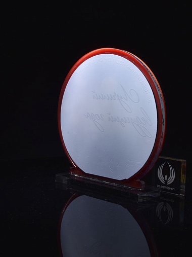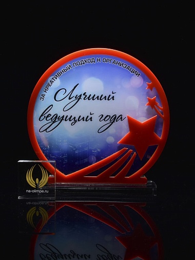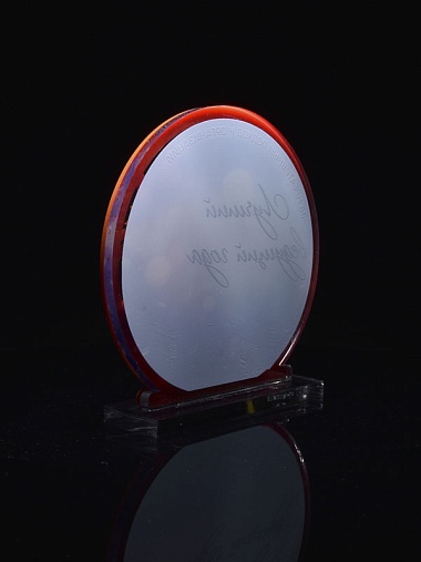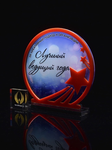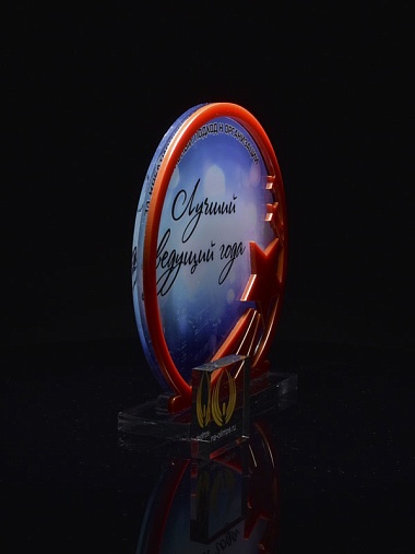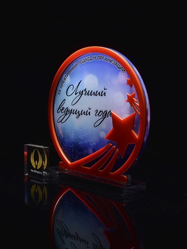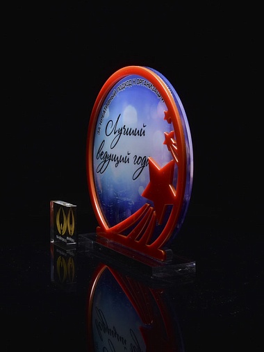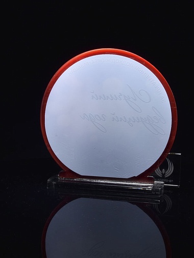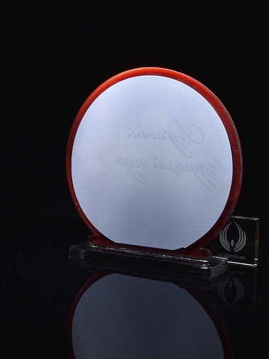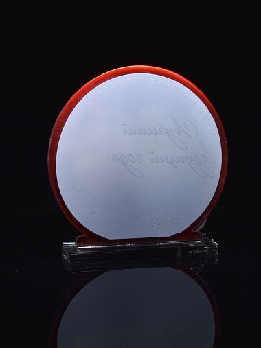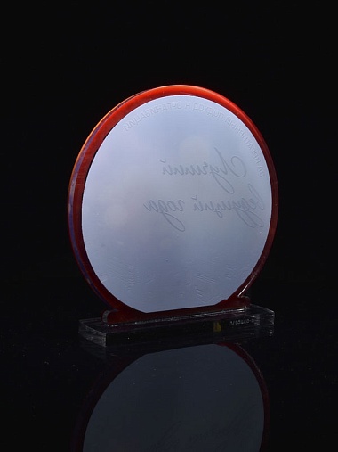 Приз из красного и прозрачного акрила с цветным нанесением.