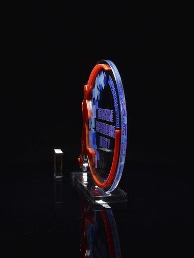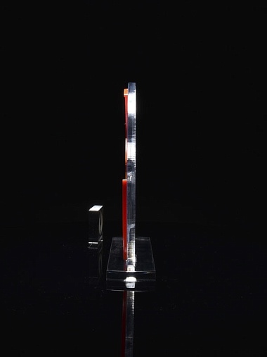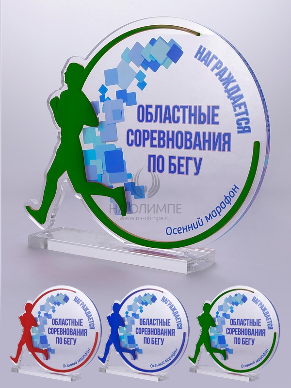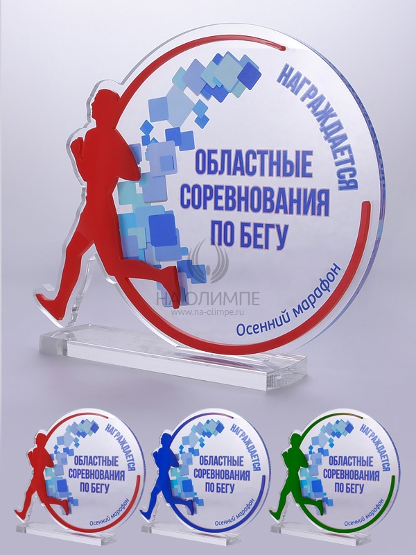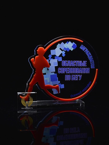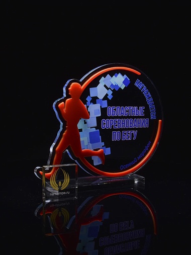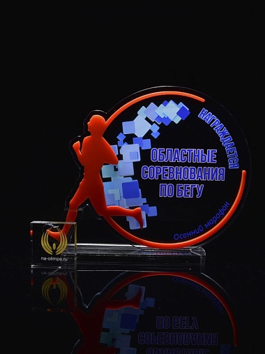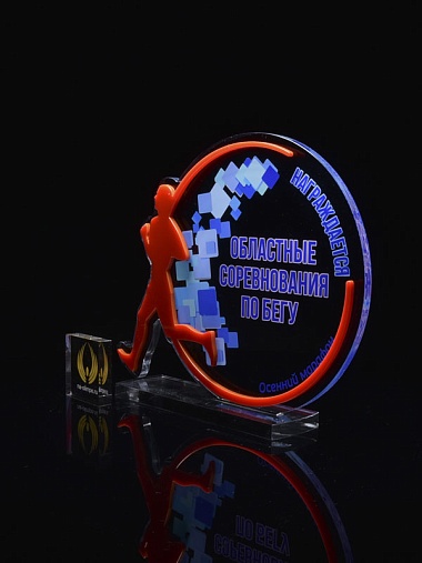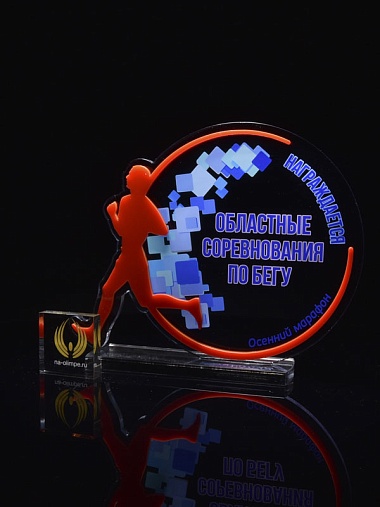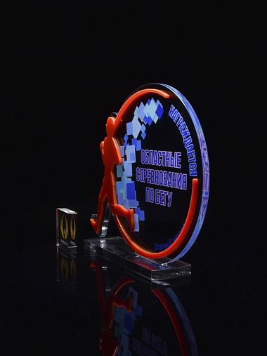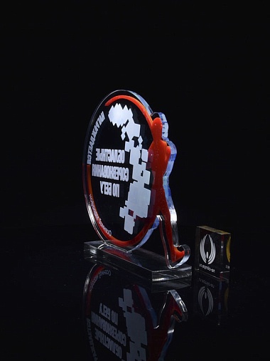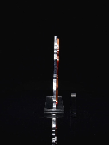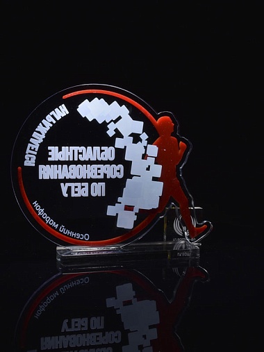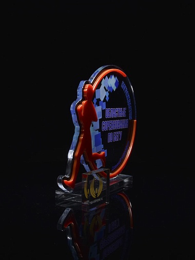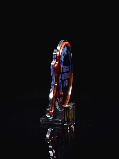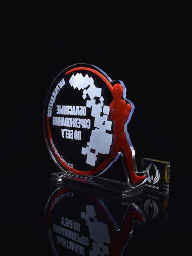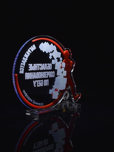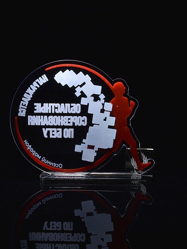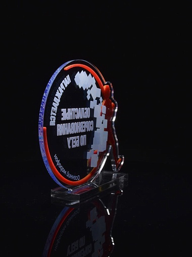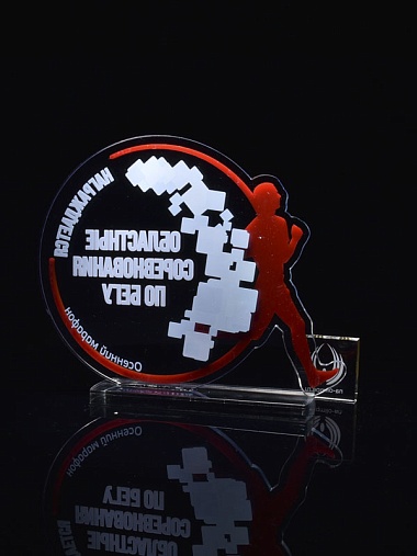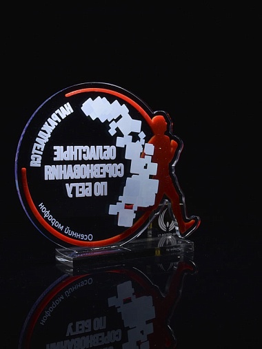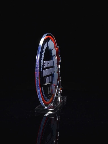 Приз из красного и прозрачного акрила с цветным нанесением.
