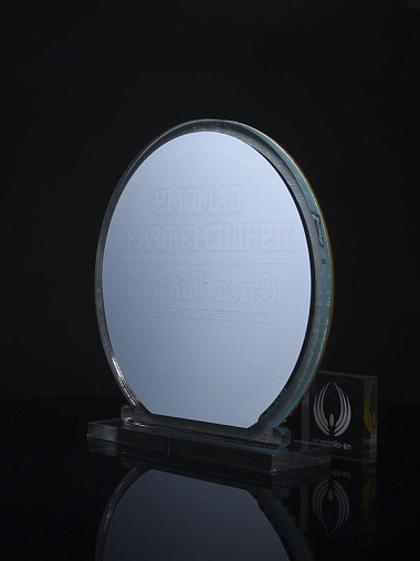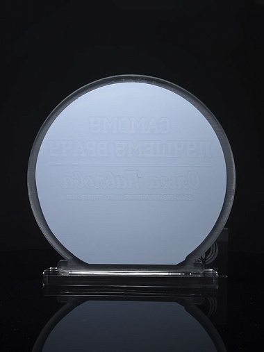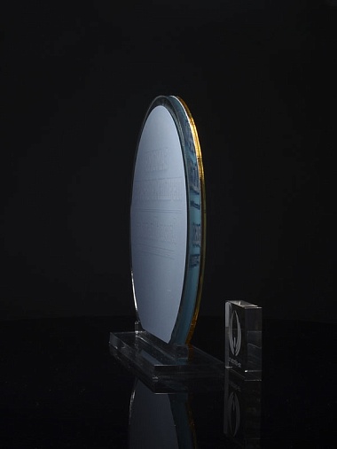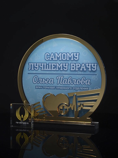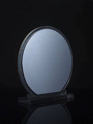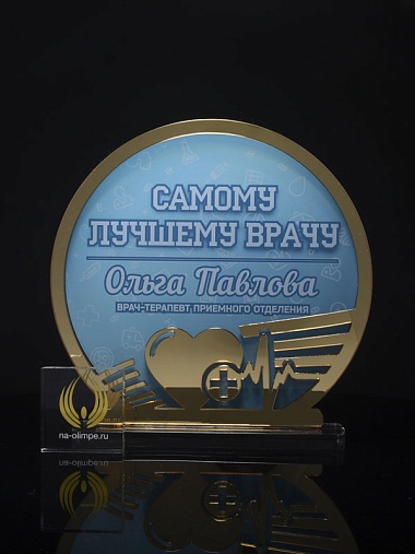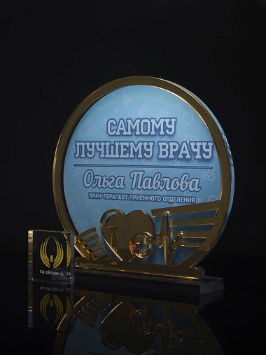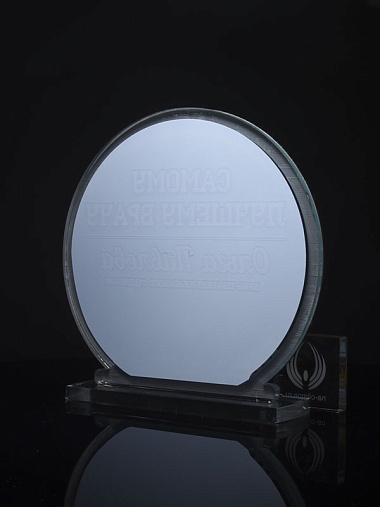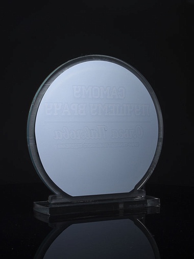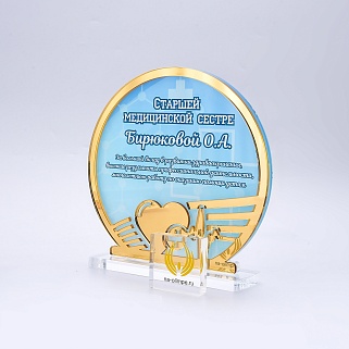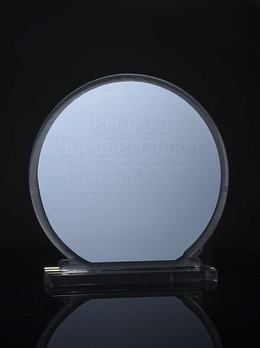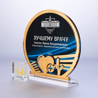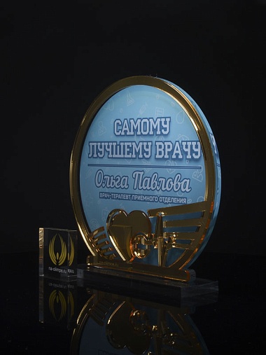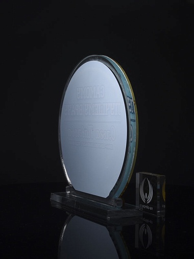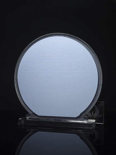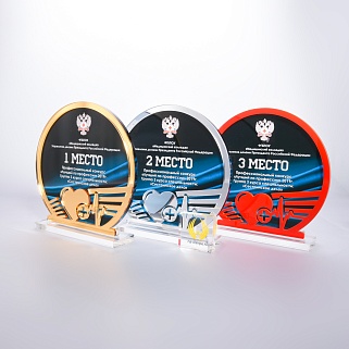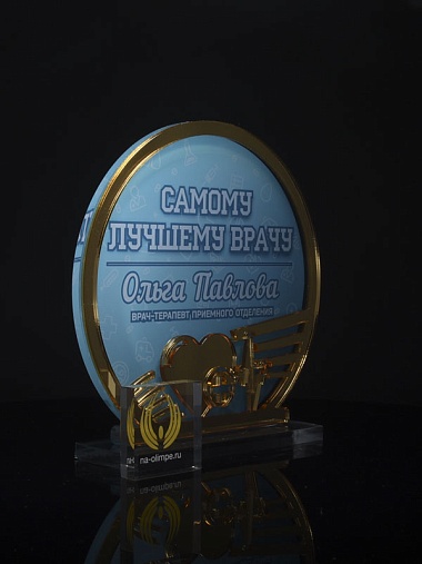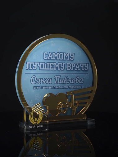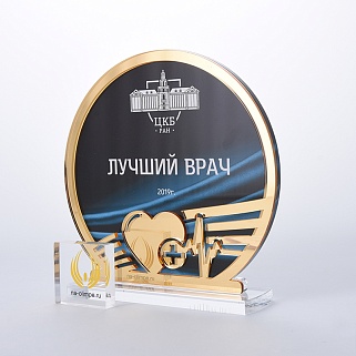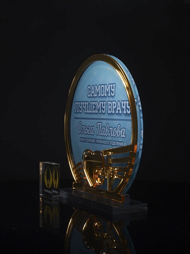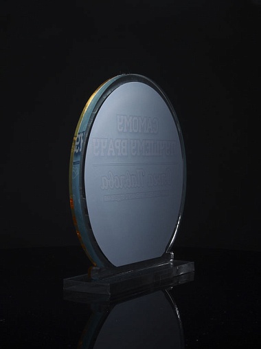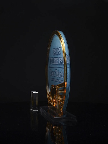 Приз из золотого и прозрачного акрила с цветным нанесением.