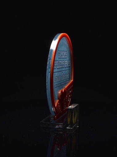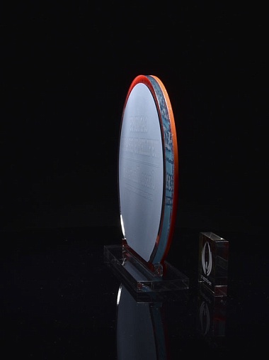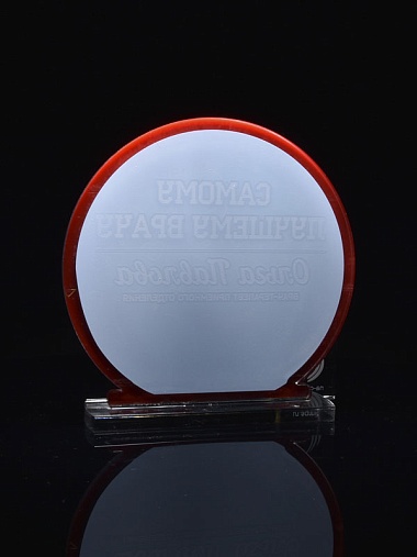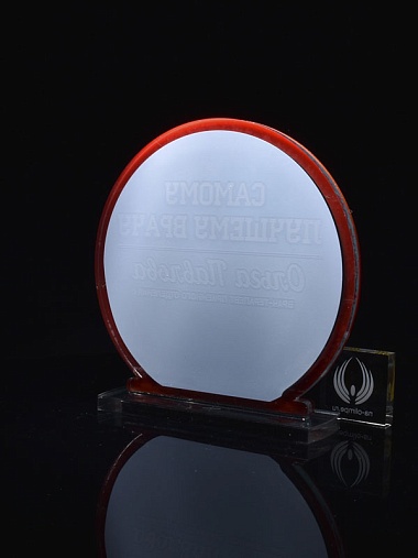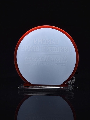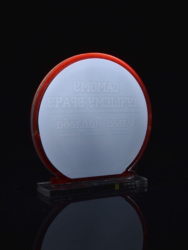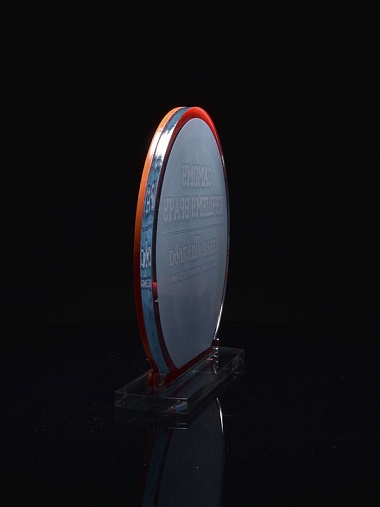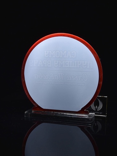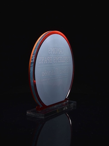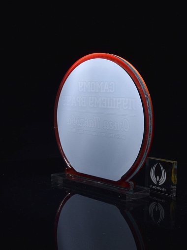 Приз из красного и прозрачного акрила с цветным нанесением.