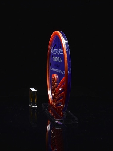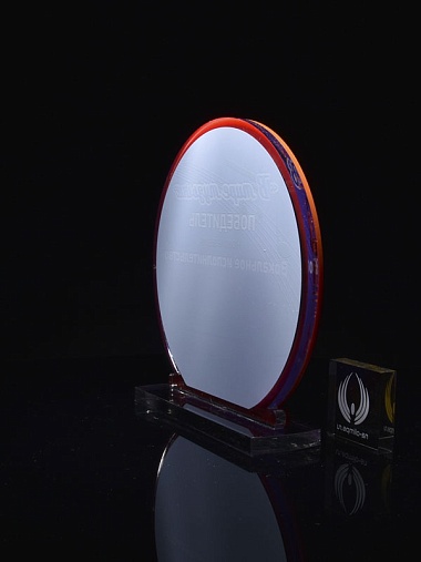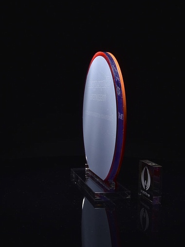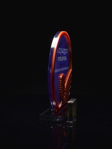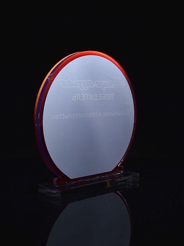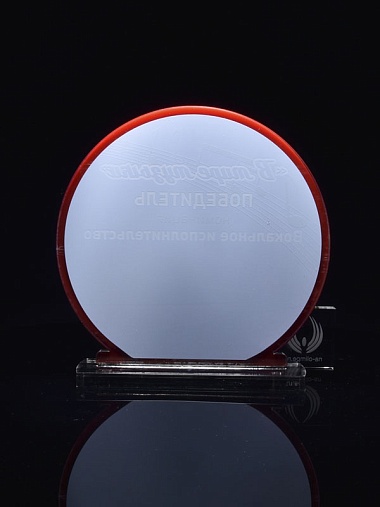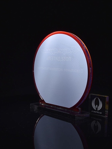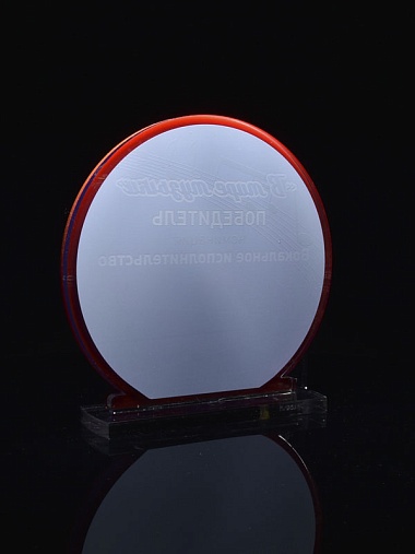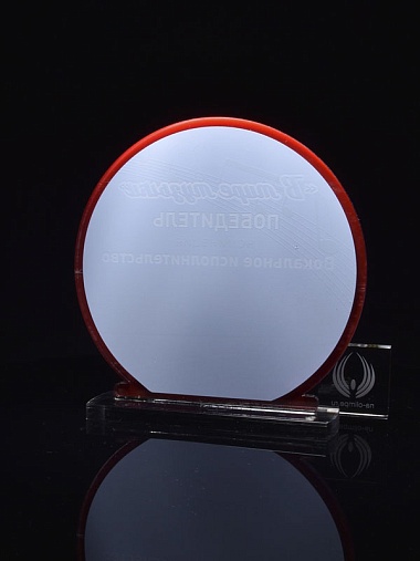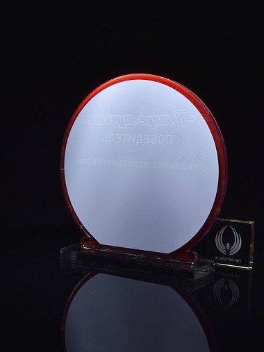 Приз из красного и прозрачного акрила с цветным нанесением.