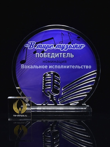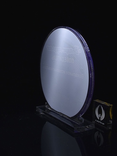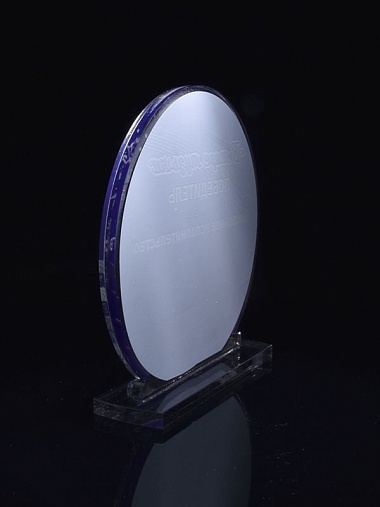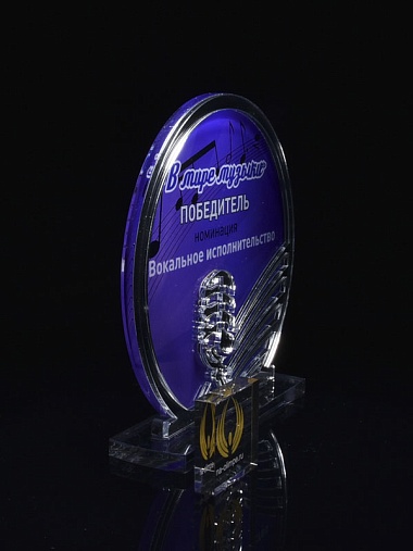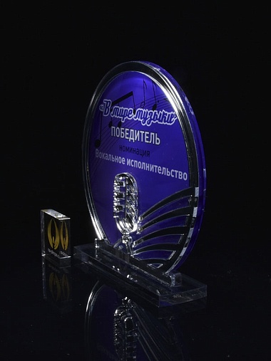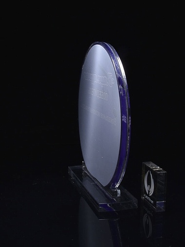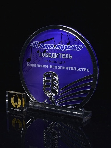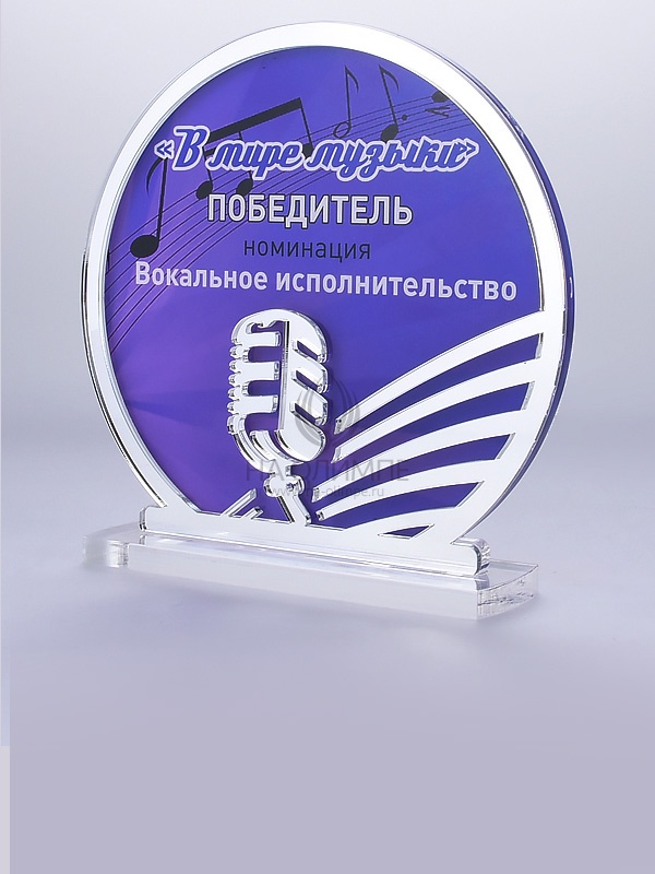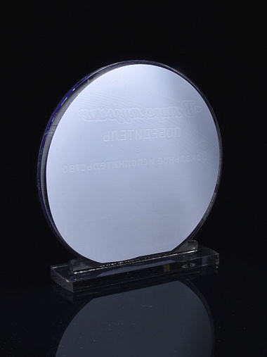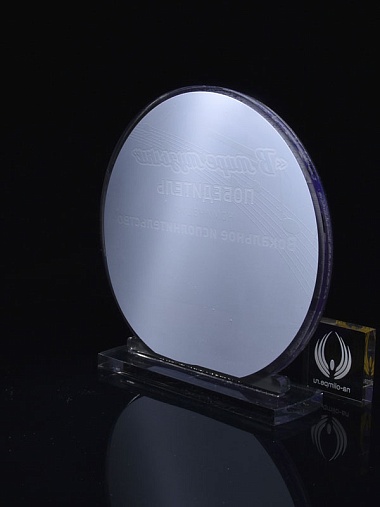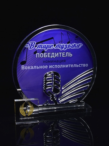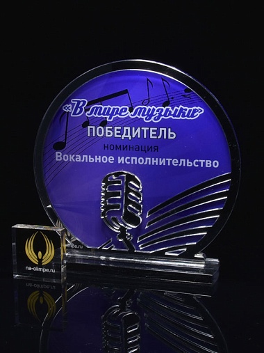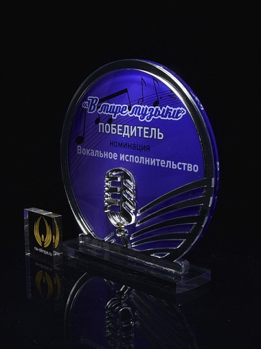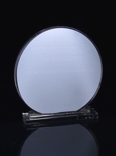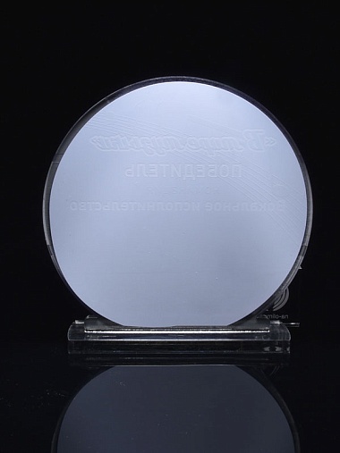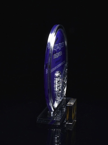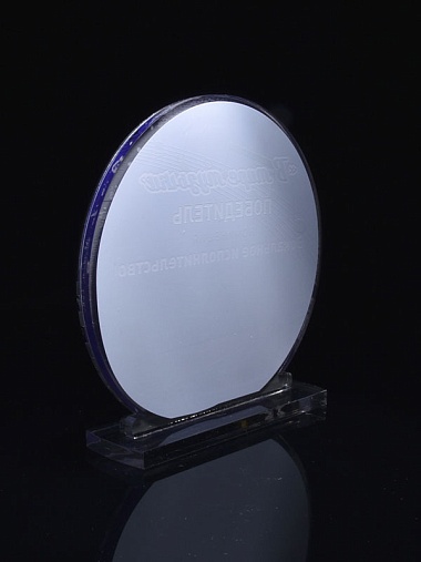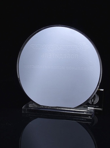 Приз из серебряного и прозрачного акрила с цветным нанесением.