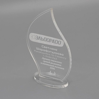 Приз из акрила 11-150 с лазерной гравировкой, высота 15 см