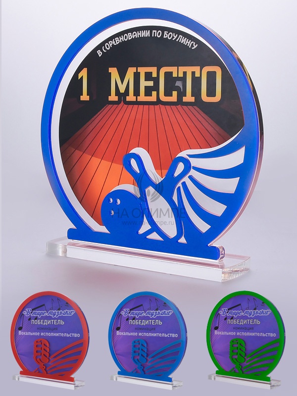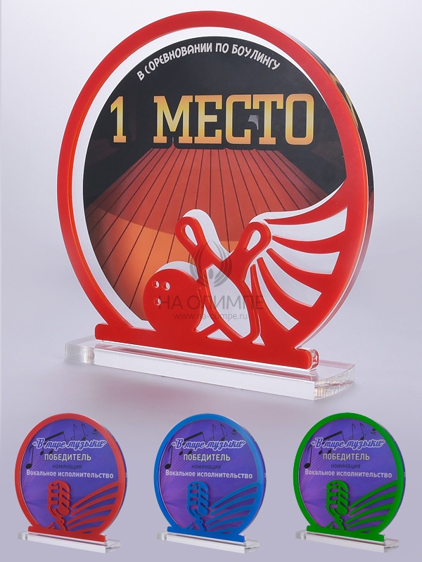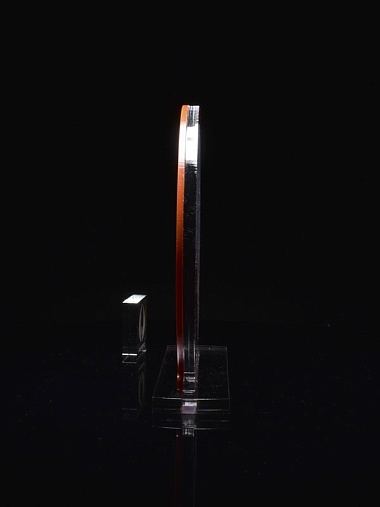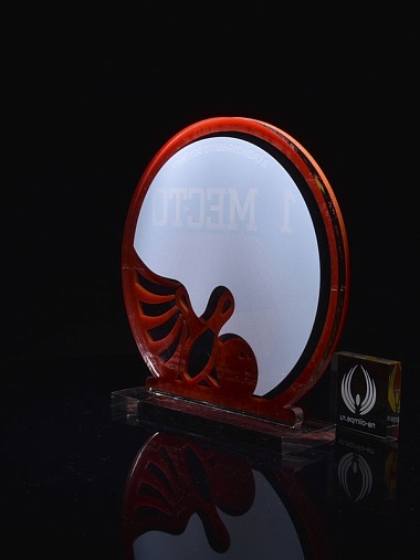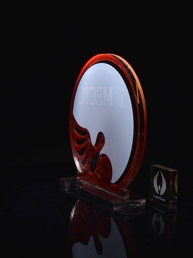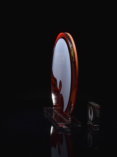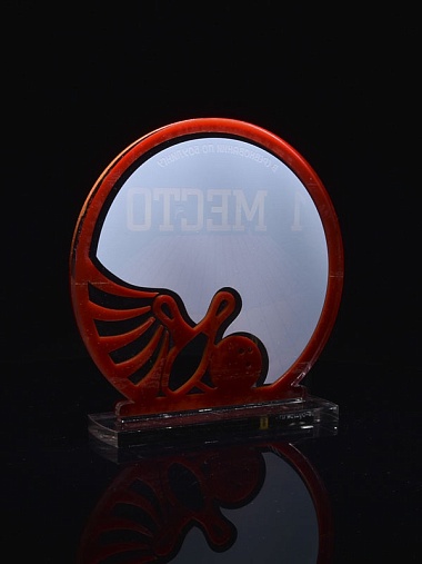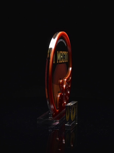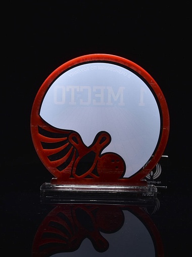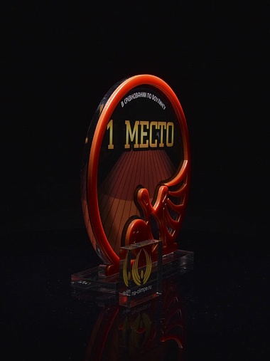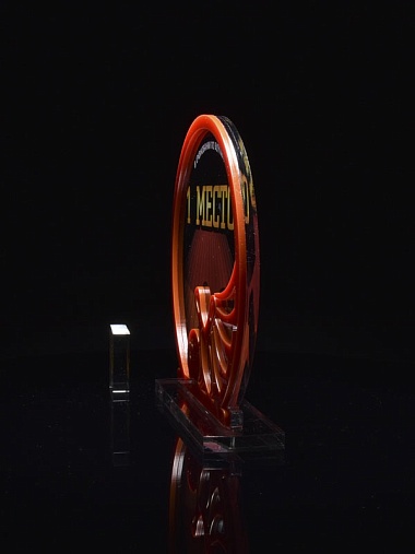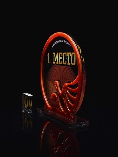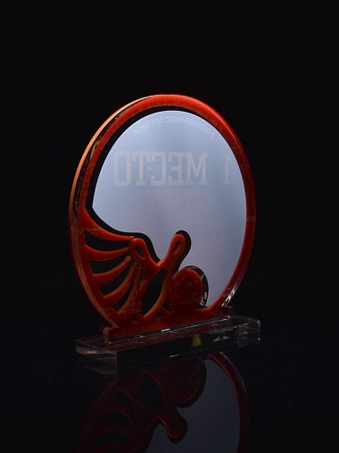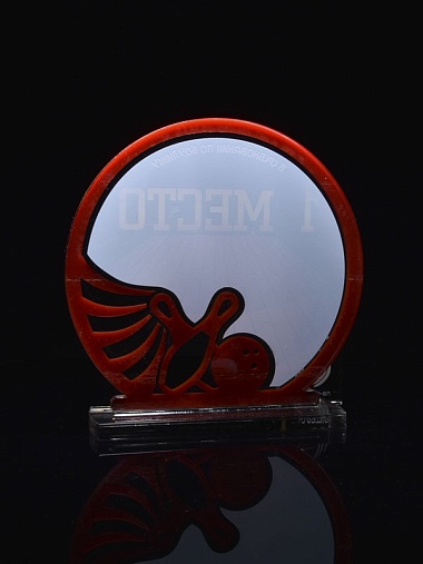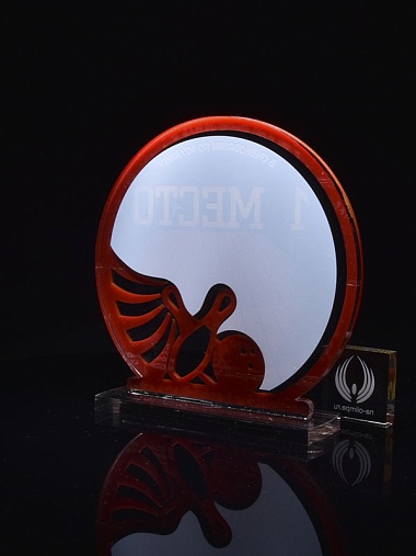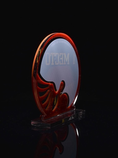 Приз из красного и прозрачного акрила с цветным нанесением.