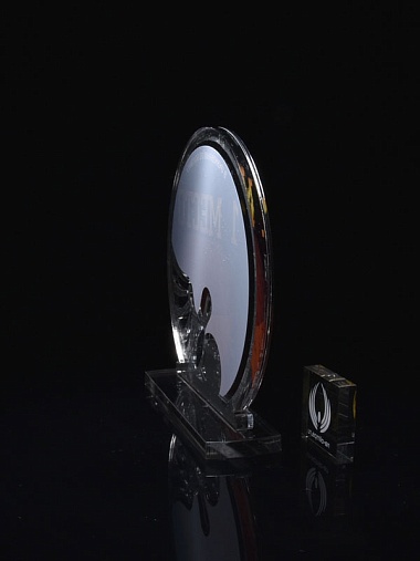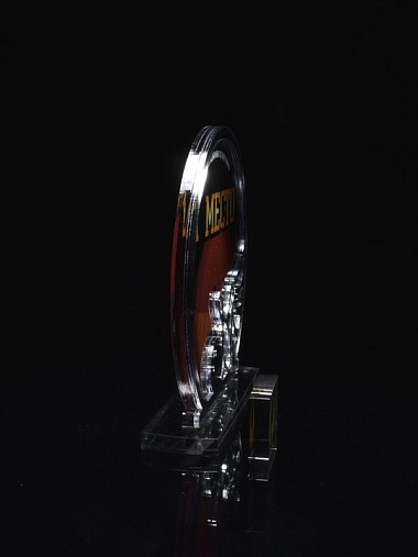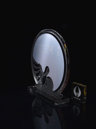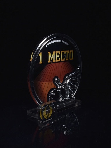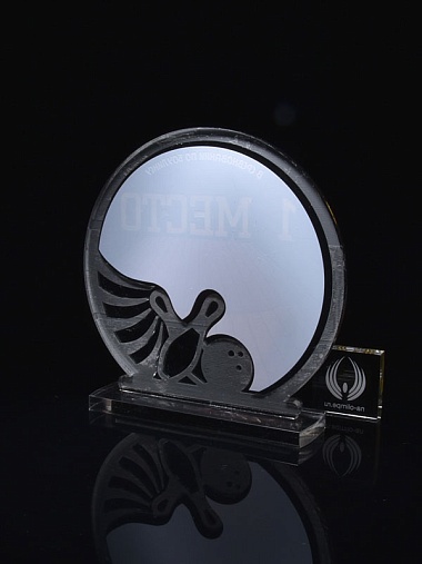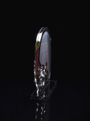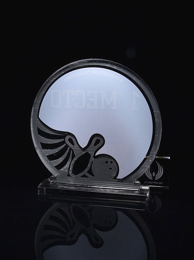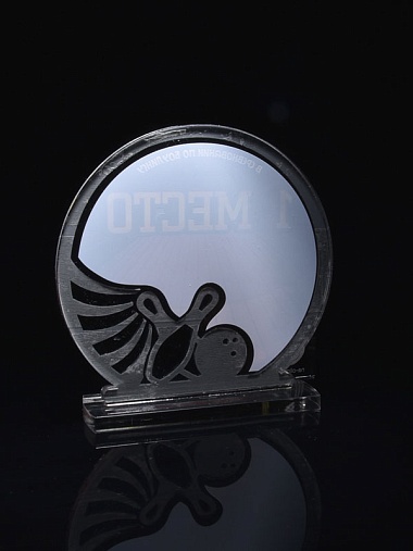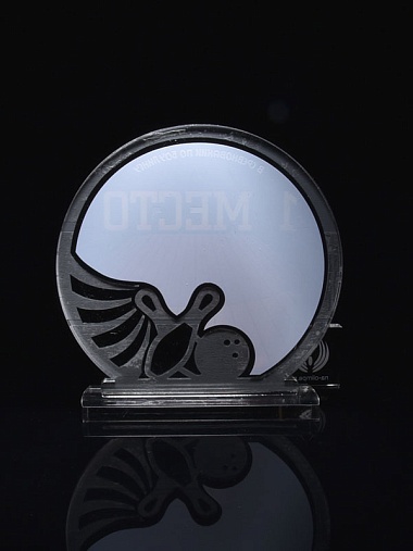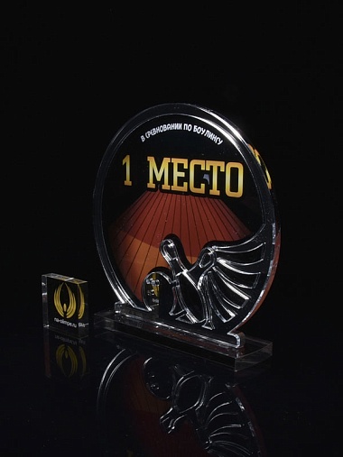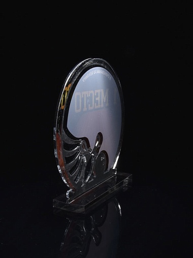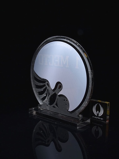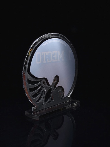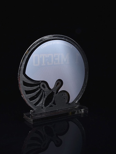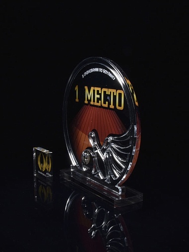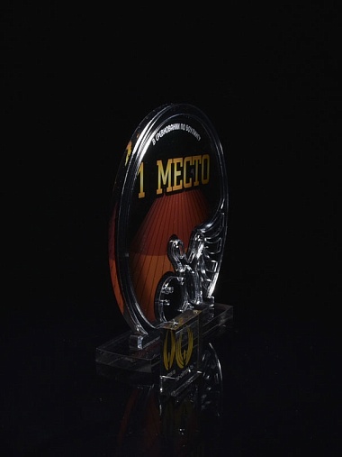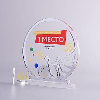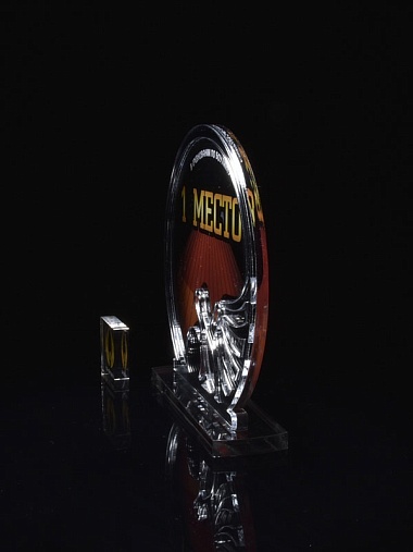 Приз из серебряного и прозрачного акрила с цветным нанесением.