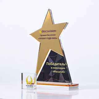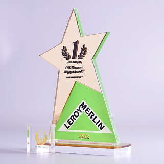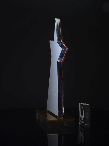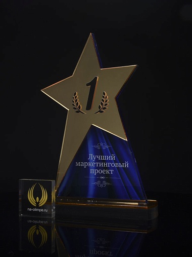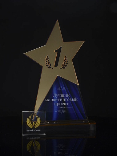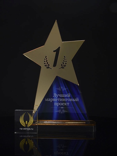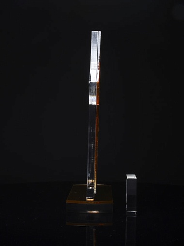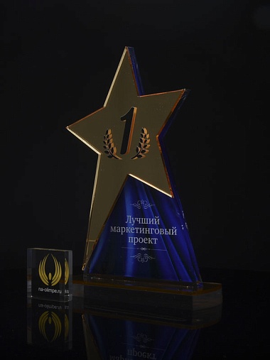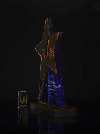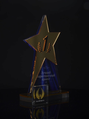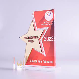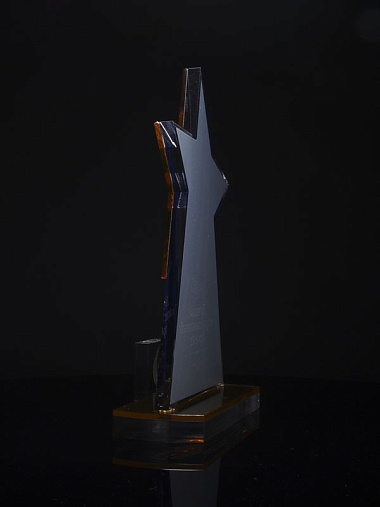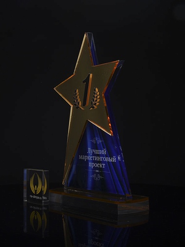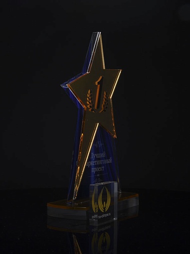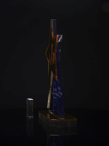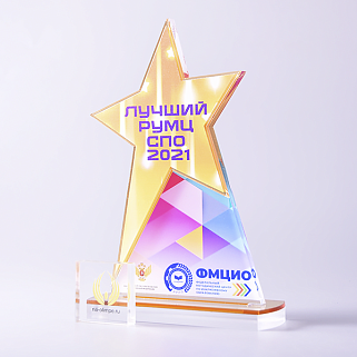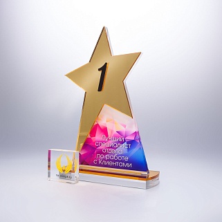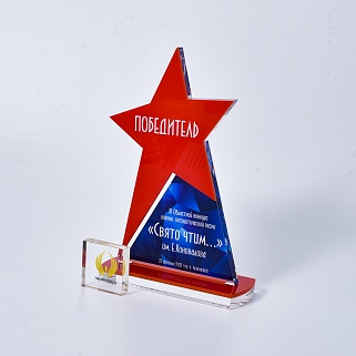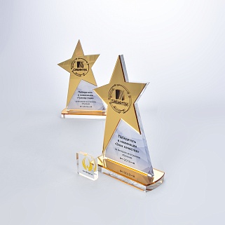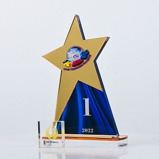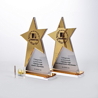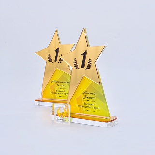 Приз из золотого и прозрачного акрила с цветным нанесением.