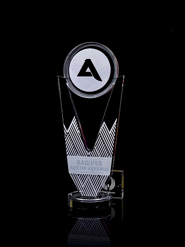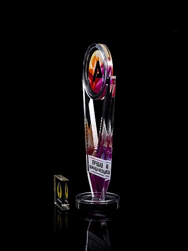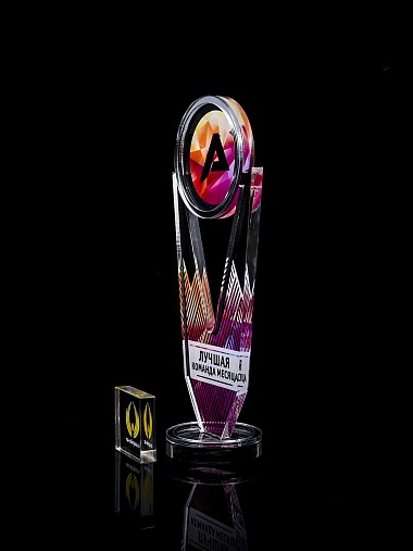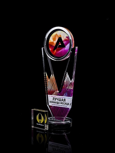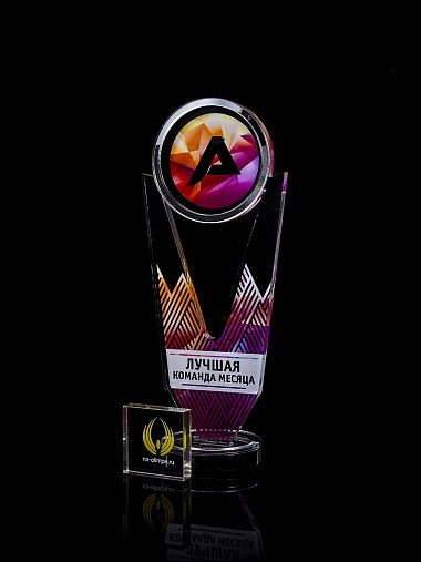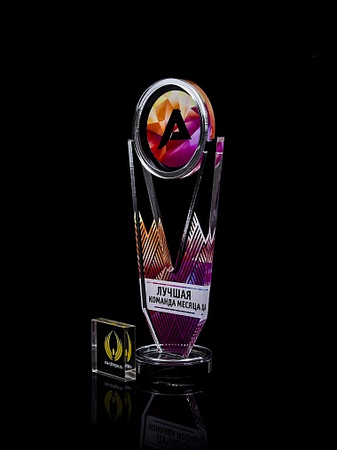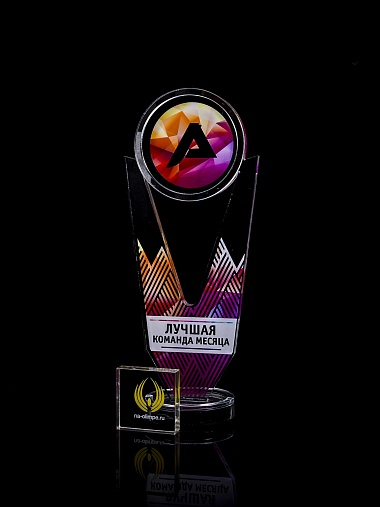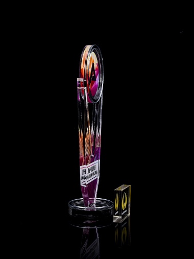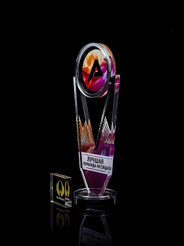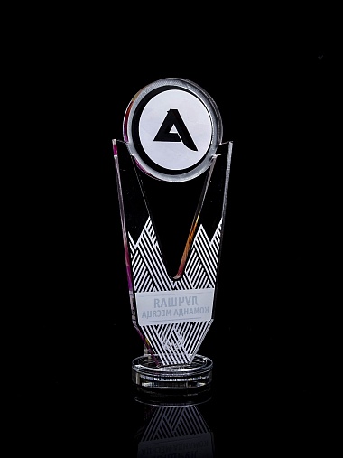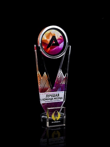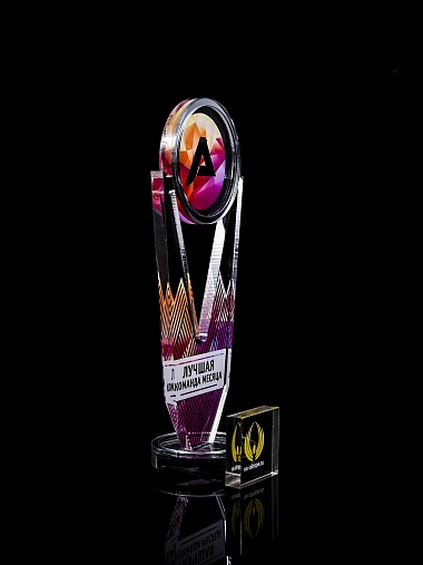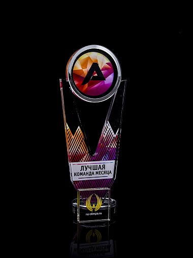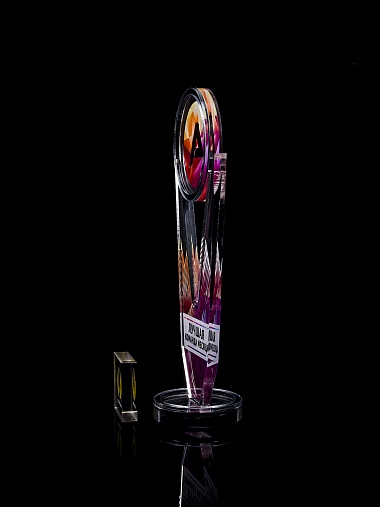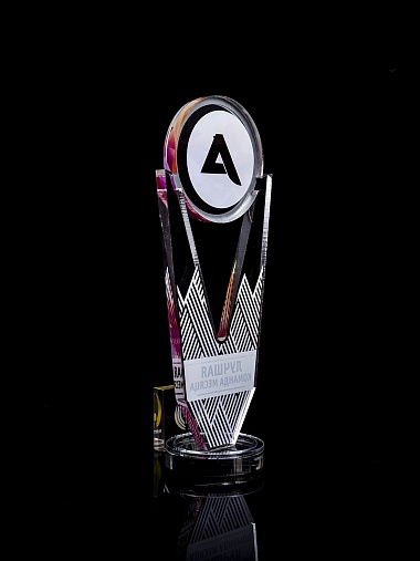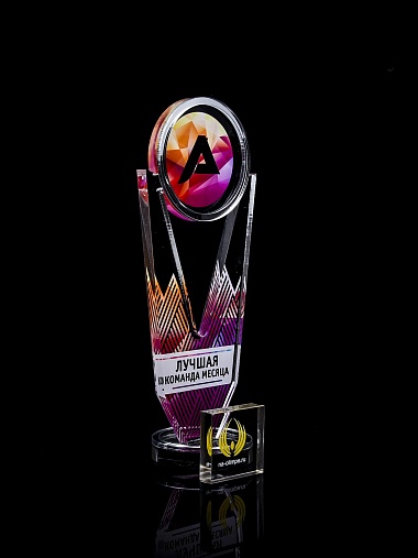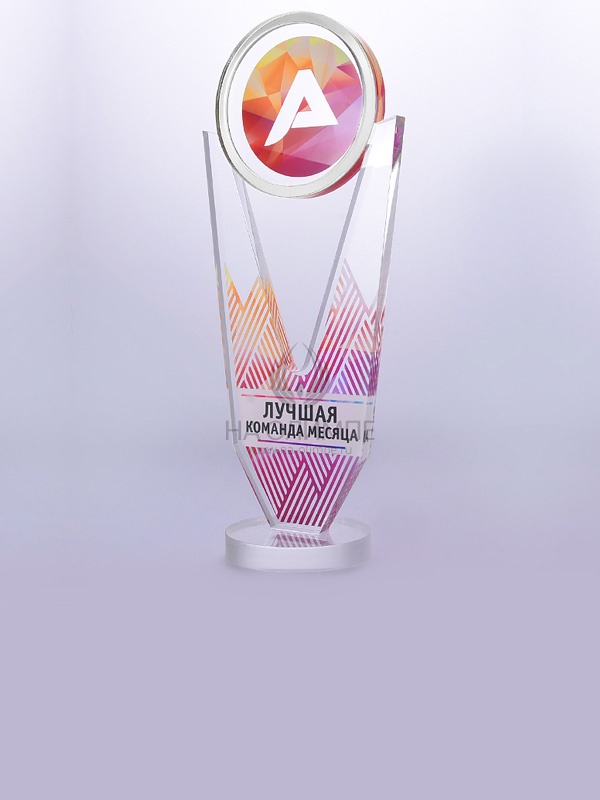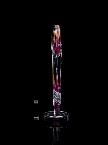 Приз из серебряного и прозрачного акрила с цветным нанесением.